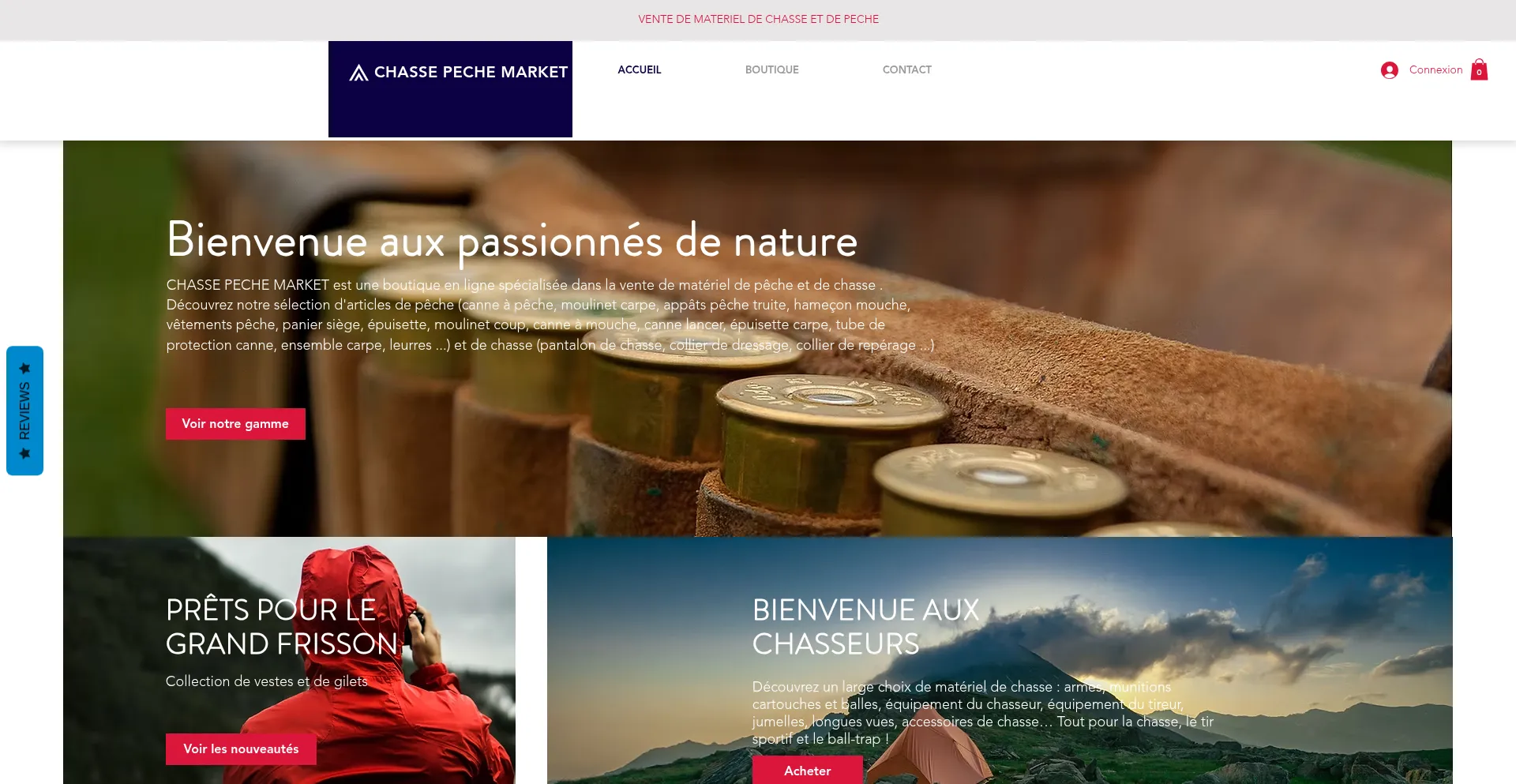 Chasse Pêche Market est une boutique en ligne spécialisée dans la vente de matériel de pêche et de chasse d'occasion.