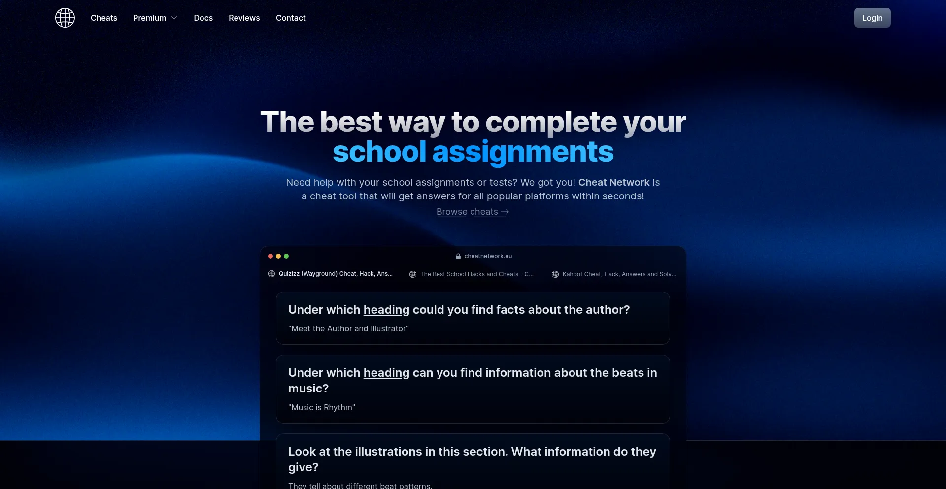 The best school cheats and answer hacks for Quizizz (Wayground), Kahoot, Blooket, Edulastic, Education Perfect and more. Instant test answers hack!