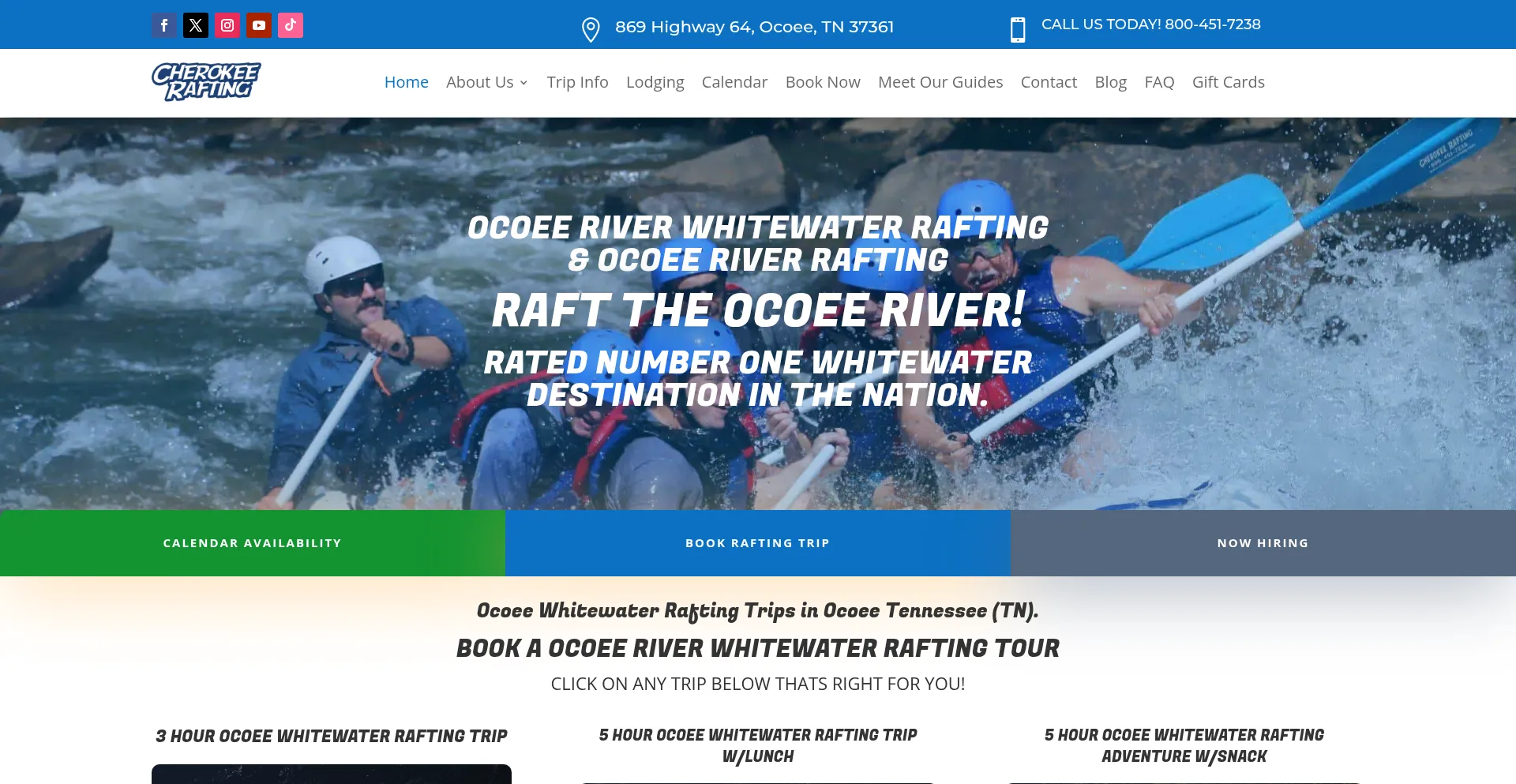 Offering Ocoee Whitewater Rafting Tours for the Middle & Upper River on the Ocoee River. Book a Whitewater Rafting Tour with Cherokee Rafting.