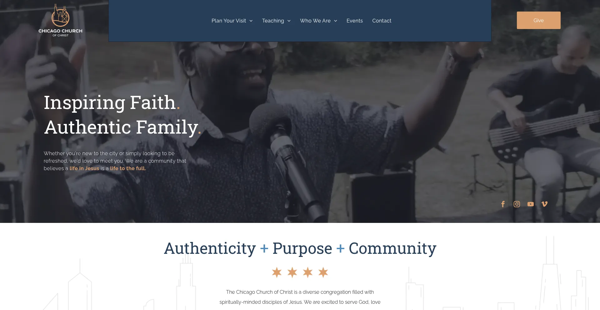 Authenticity + Purpose + Community. The Chicago Church of Christ is a diverse congregation filled with spiritually-minded disciples of Jesus.
