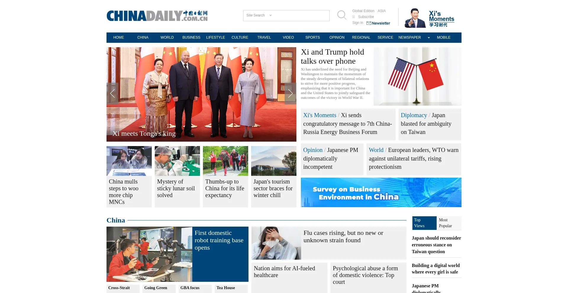 Chinadaily.com.cn is the largest English portal in China, providing news, business information, BBS, learning materials. The Website has channels as China, BizChina, World, Opin...