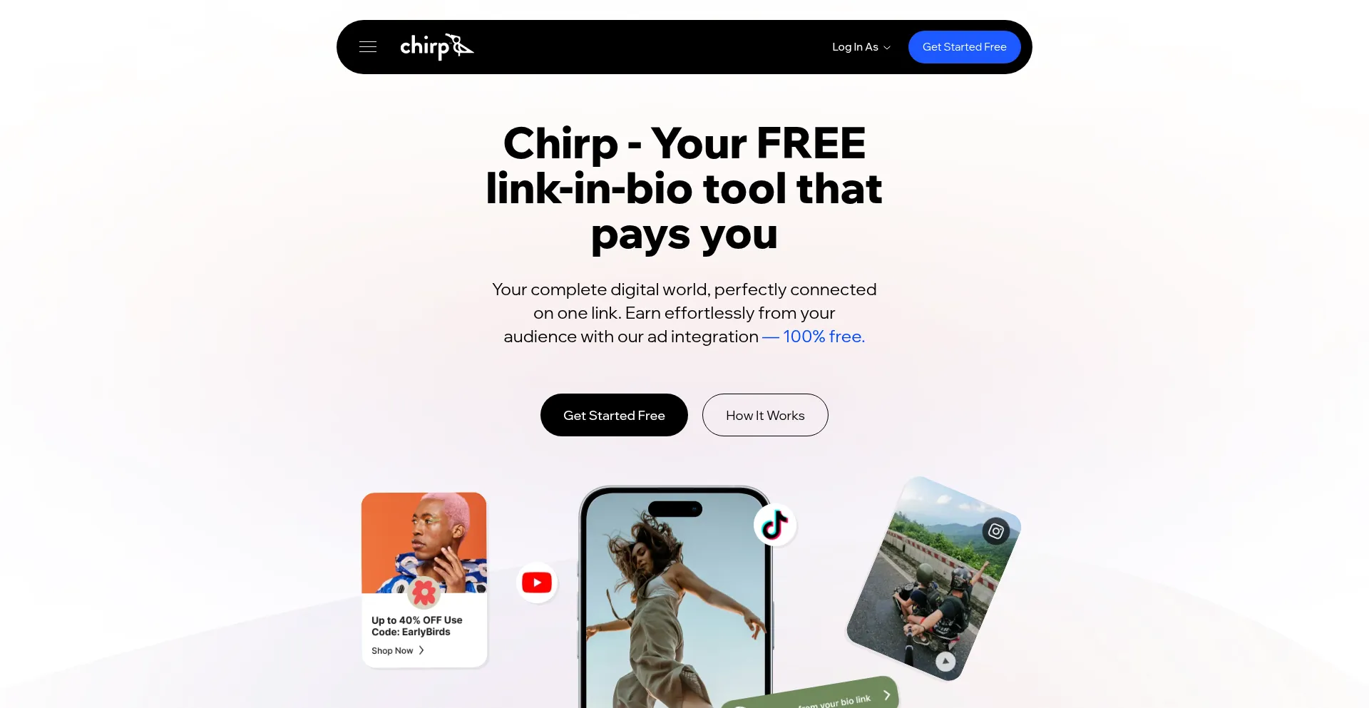 One link for all your socials, shops & more. Chirp™ offers a truly free, customizable link-in-bio solution that pays you. Start monetizing your audience.