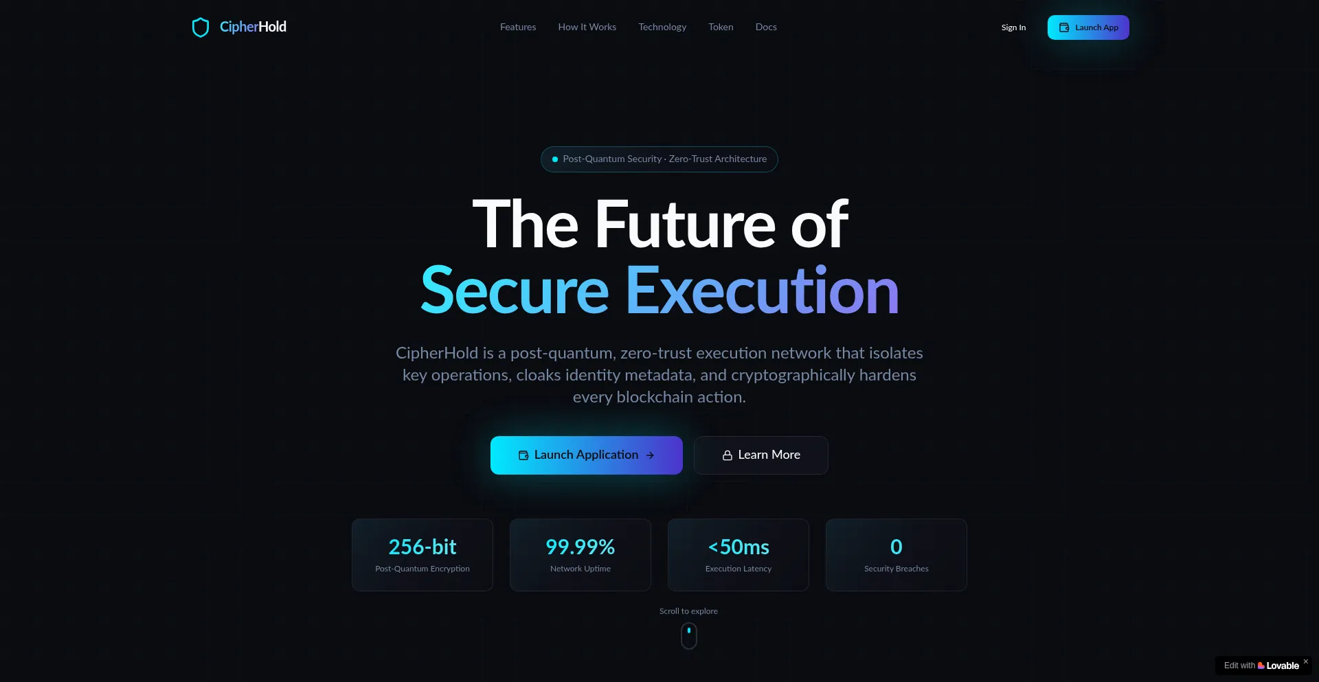 CipherHold is a post-quantum, zero-trust execution network that isolates key operations, cloaks identity metadata, and cryptographically hardens every blockchain action.