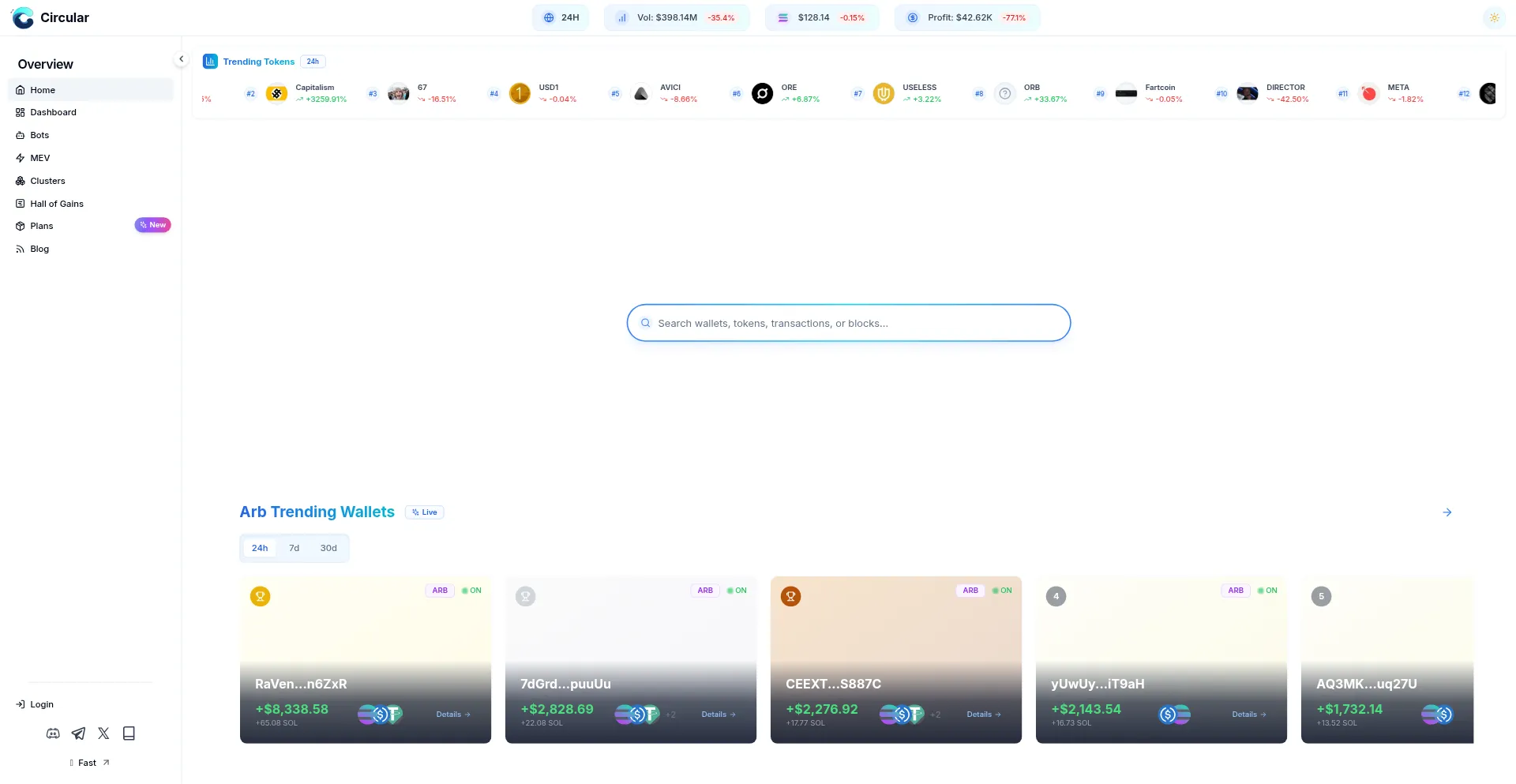 Circular.fi - MEV Hub on Solana | Portfolio & Analytics