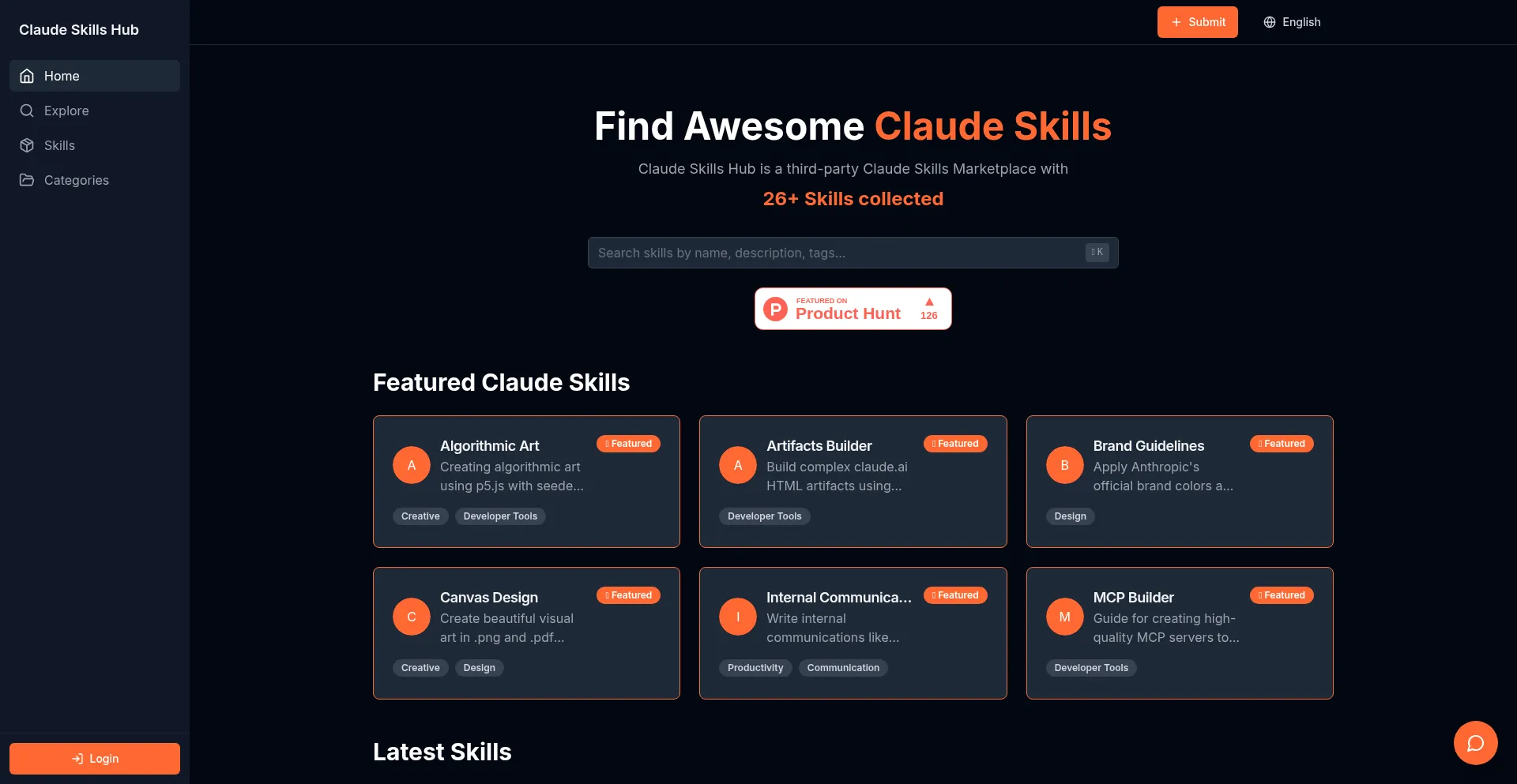 claudeskills.info está listado no Product Hunt, uma plataforma para descoberta de produtos e feedback da comunidade.