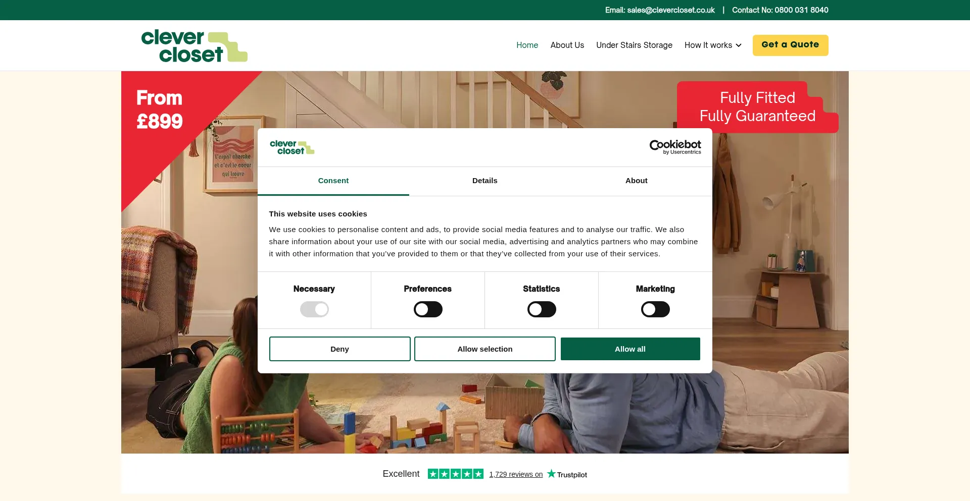 O site implementa mecanismos de consentimento de cookies em conformidade com regulamentações de privacidade como GDPR ou CCPA. Isso demonstra que clevercloset.co.uk adere a padrões de proteção de dados e fornece aos usuários controle sobre práticas de coleta de dados pessoais.