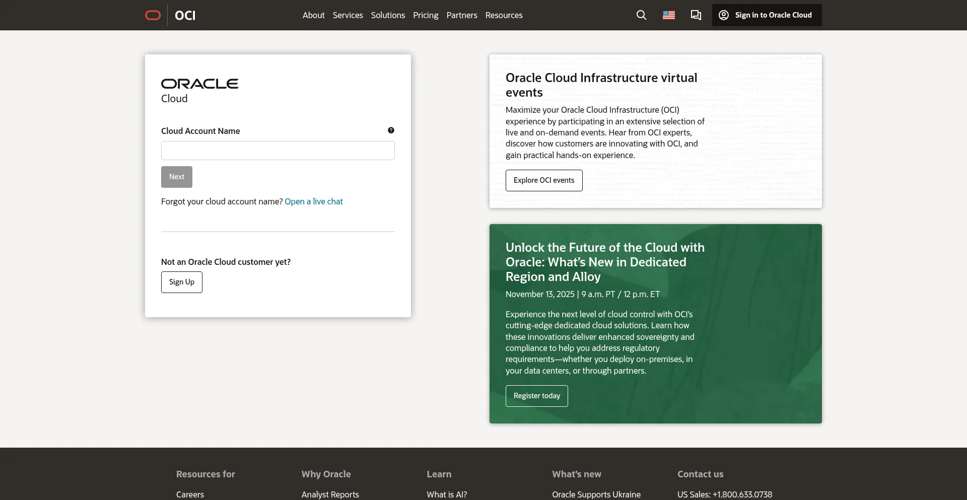 Cloud.oracle.com Avaliação do site