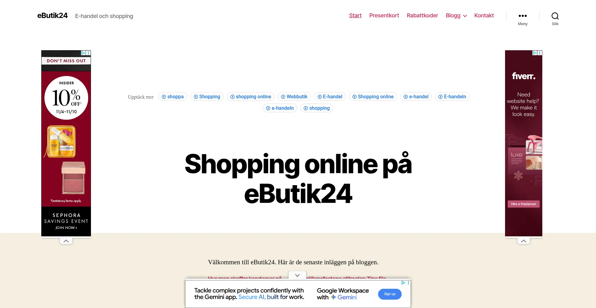 Shopping med oanade möjligheter på eButik24.se. Hitta tips på produkter och e-butiker, laddade med rabatter och rabattkoder. Shoppingtips du inte bör missa!