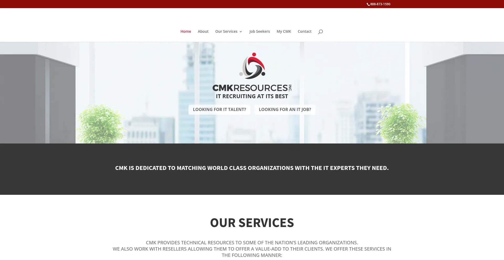 CMK Resources Inc is dedicated to matching world class organizations with the IT experts they need. Call us today: 888-873-1590