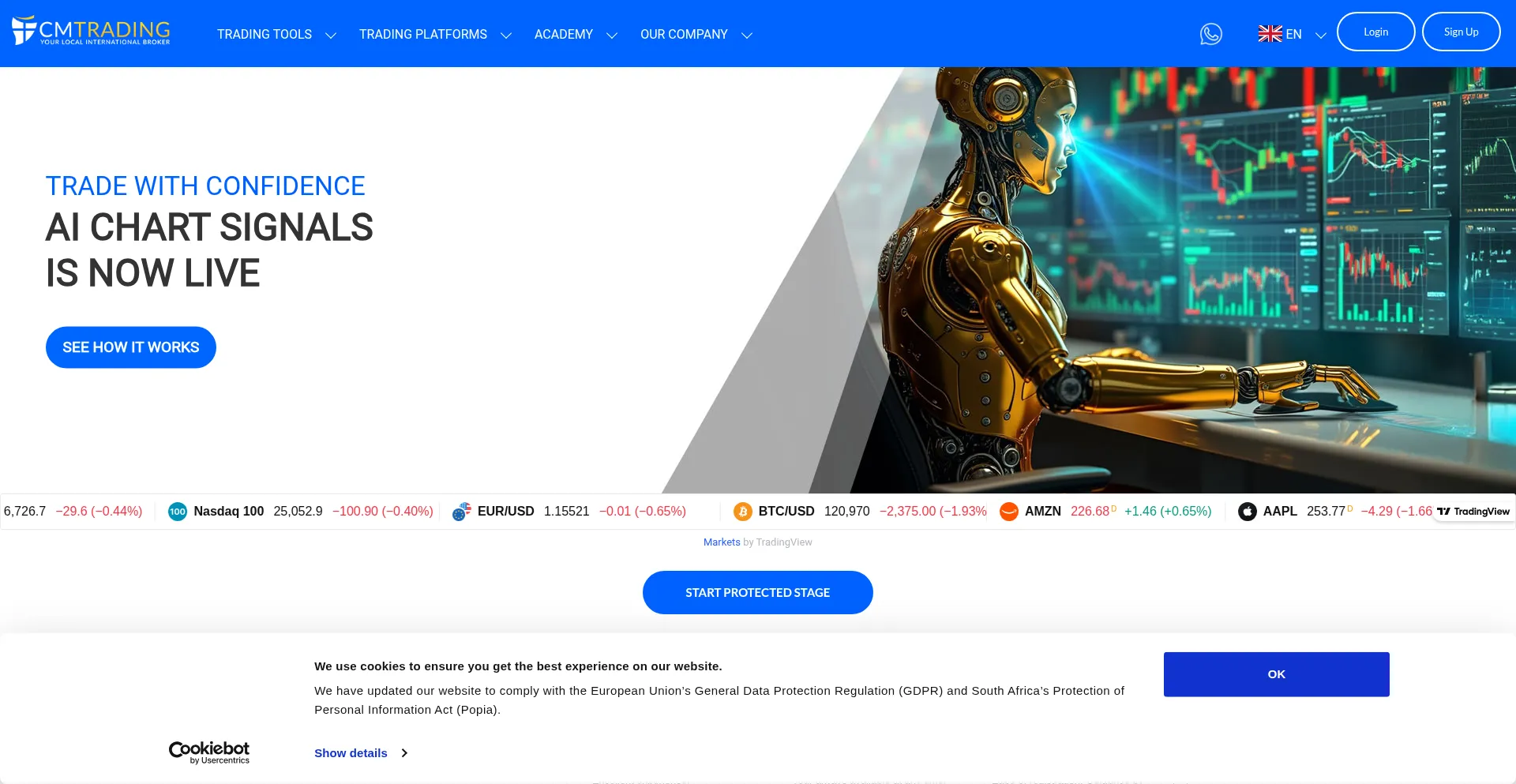 O site implementa mecanismos de consentimento de cookies em conformidade com regulamentações de privacidade como GDPR ou CCPA. Isso demonstra que cmtrading.com adere a padrões de proteção de dados e fornece aos usuários controle sobre práticas de coleta de dados pessoais.