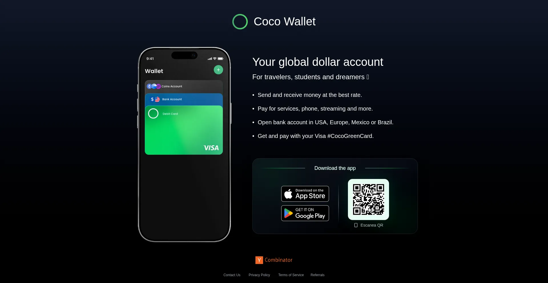 Abre tu cuenta global en dólares con Coco Wallet y controla tu dinero desde cualquier país. Envía, recibe y gasta USDC o USD al instante, sin bancos ni fronteras. Tu dinero, ...