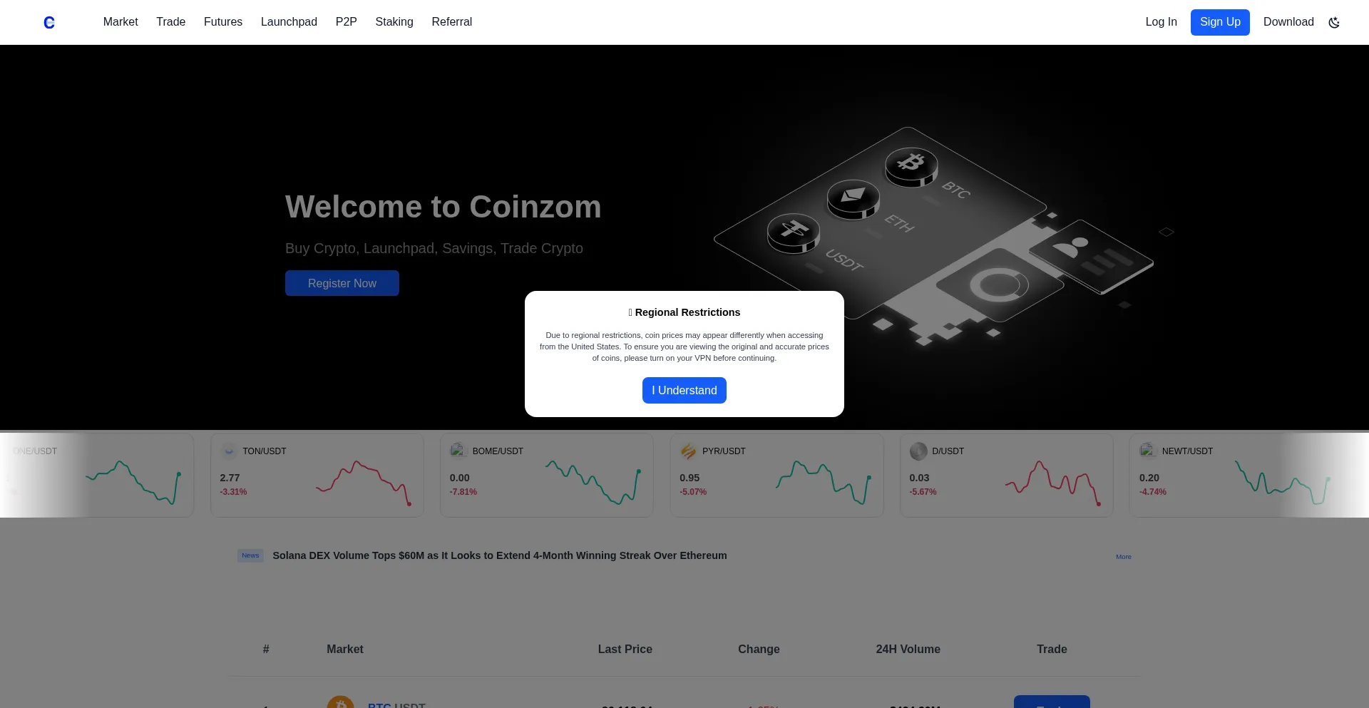 Due to regional restrictions, coin prices may appear differently when accessing from the United States.