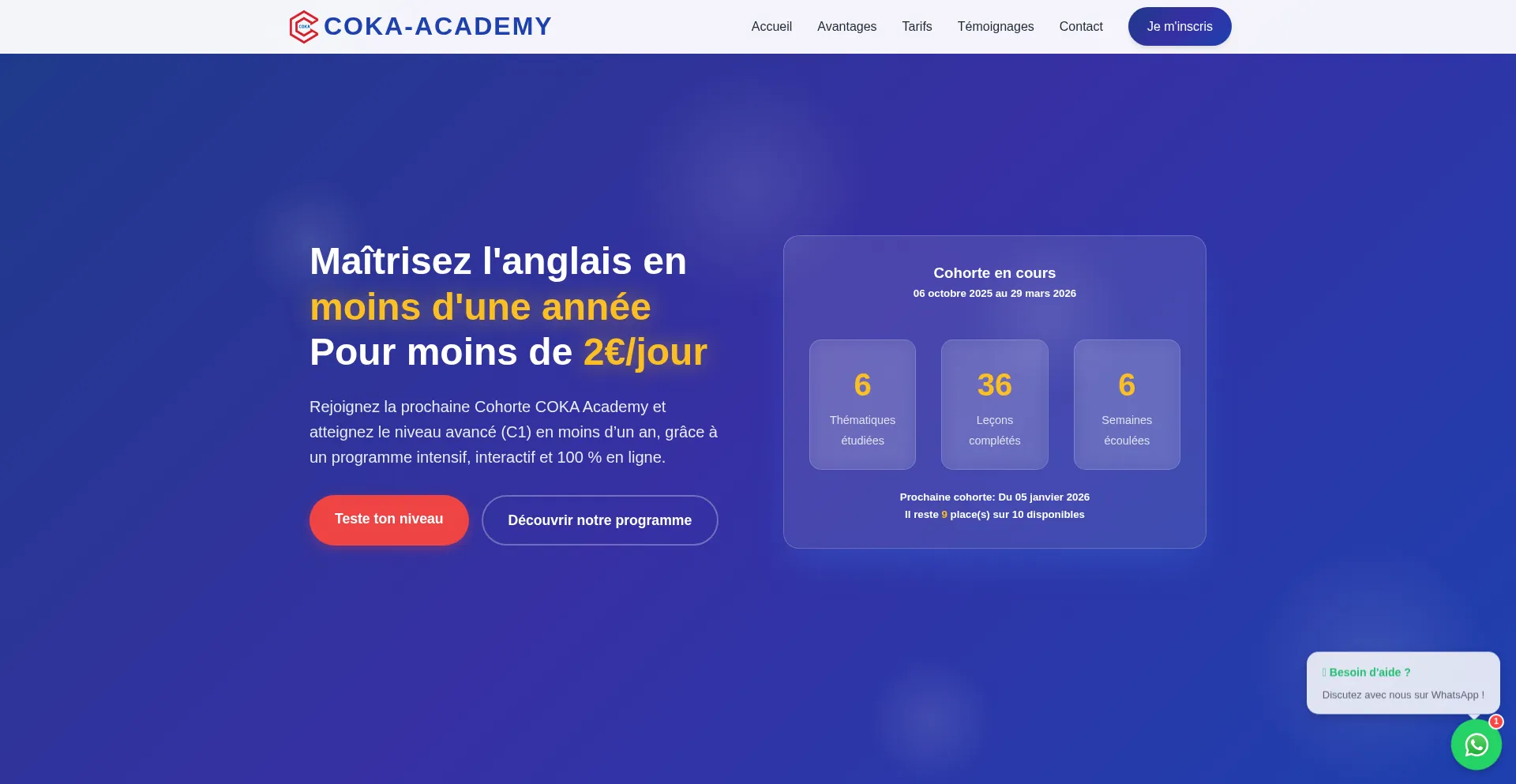 Apprenez l'anglais en ligne avec COKA. Formation accélérée pour maîtriser l'anglais en moins d'une année. Cours interactifs, suivi personnalisé, certification reconnue. Te...