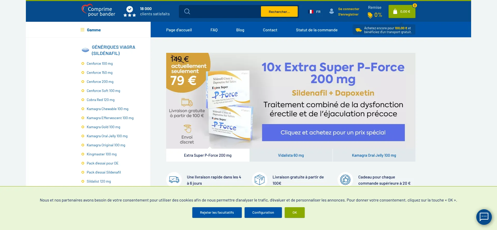 La dysfonction érectile ou l'éjaculation précoce ne peuvent plus vous affliger. Résolvez-les tout discrètement et profitez du Viagra avec des prix avantageux.