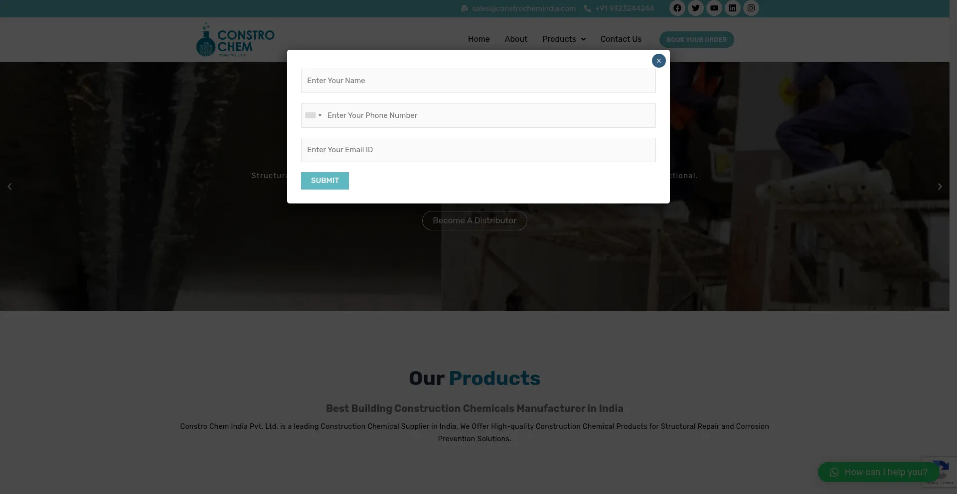 O site implementa formulários de coleta de dados solicitando informações pessoais incluindo nomes, endereços de e-mail, números de telefone ou outros detalhes sensíveis. Os usuários devem verificar a legitimidade de constrochemindia.com e revisar políticas de privacidade antes de enviar dados pessoais.