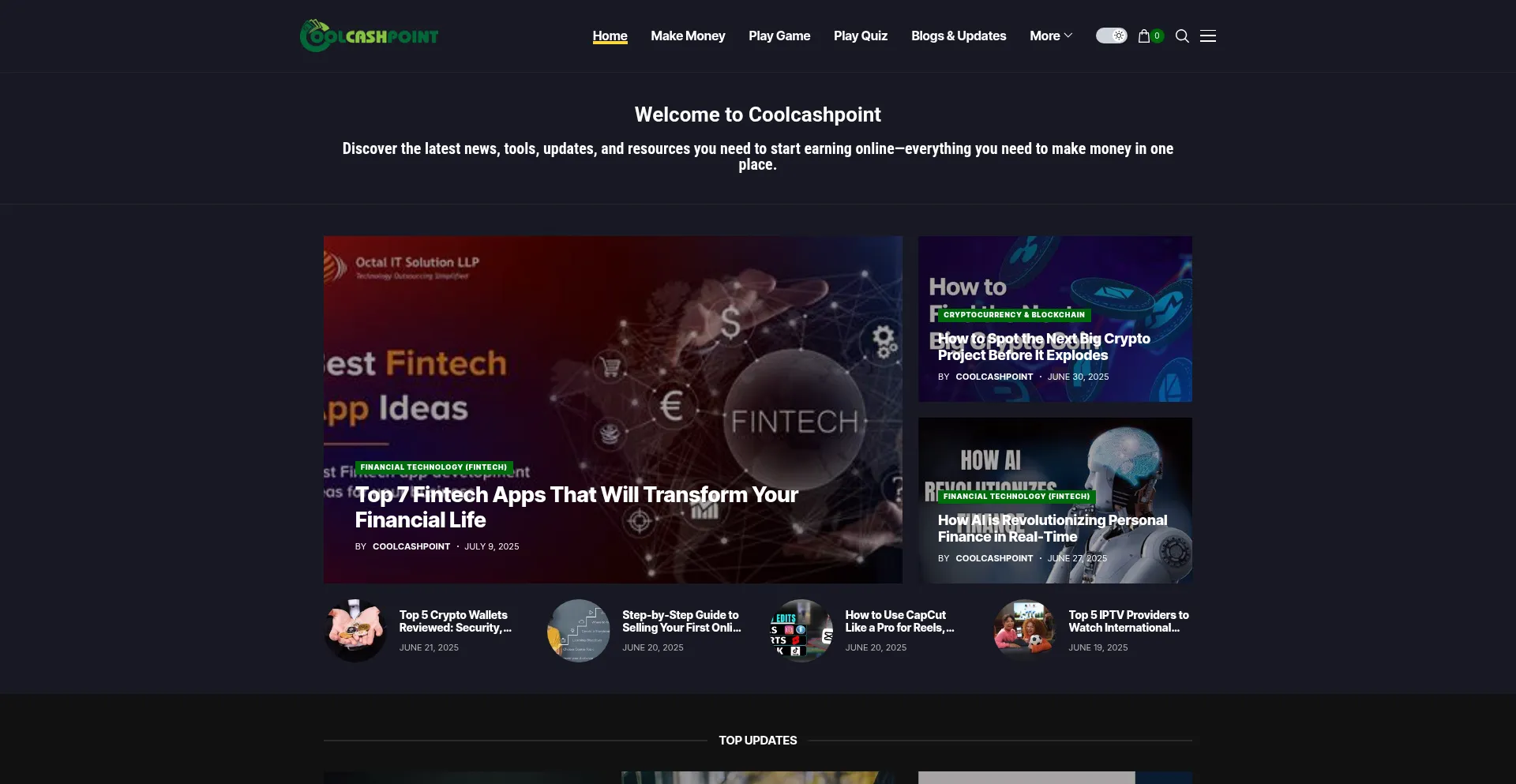 Welcome to Coolcashpoint Discover the latest news, tools, updates, and resources you need to start earning online—everything you need to make money in one pl...