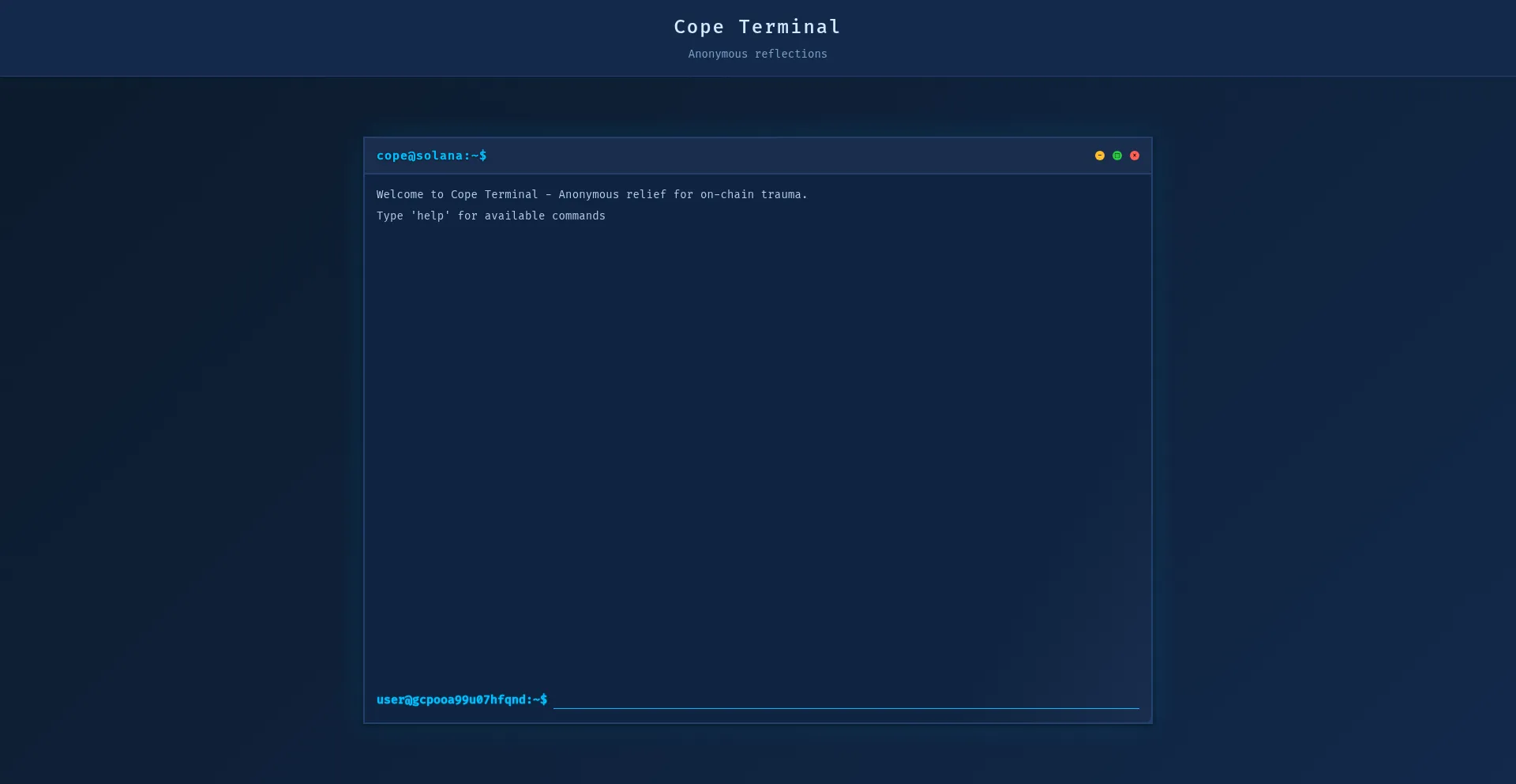 Cope Terminal - Anonymous confessions for pump.fun traders