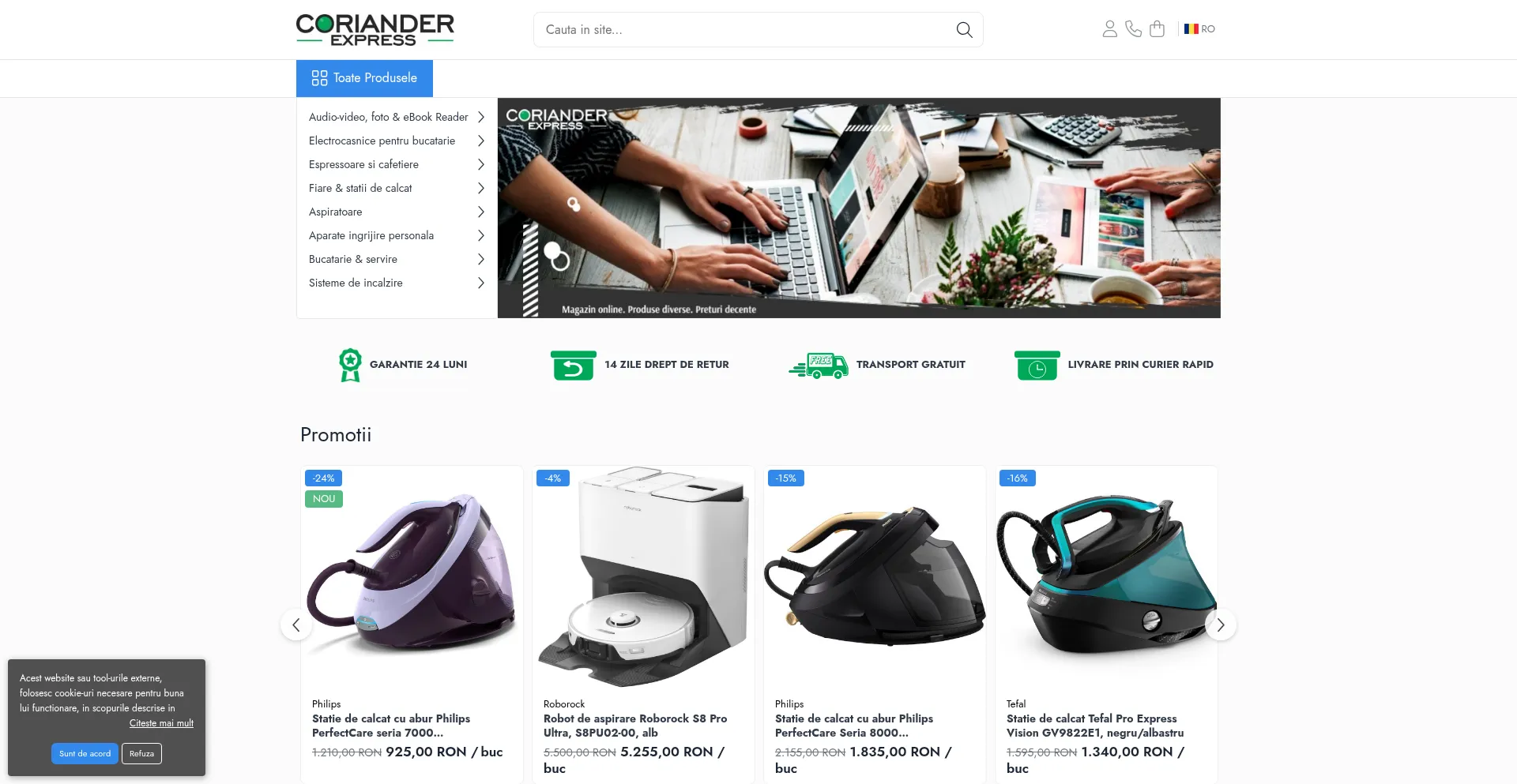 Coriander Express ofera produse electronice si electrocasnice premium la preturi avantajoase. Livrare rapida in toata Romania, garantie si suport dedicat.