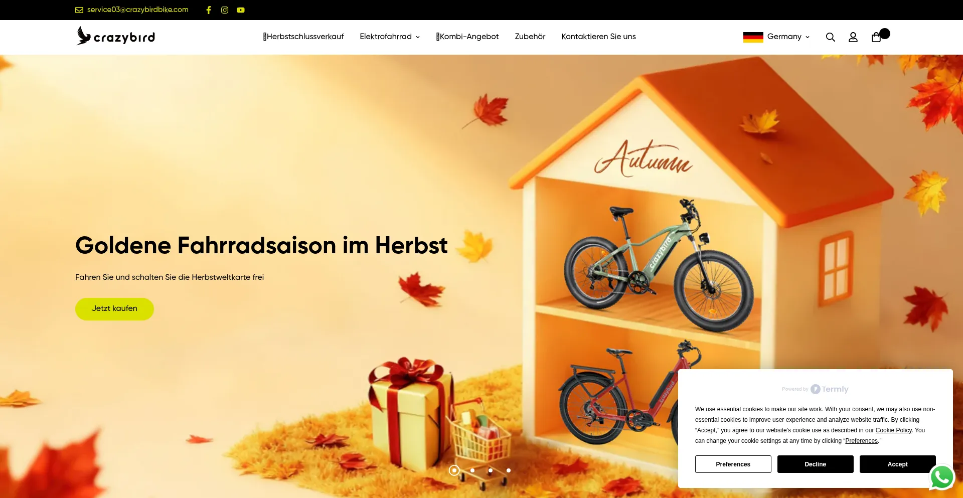 O site implementa mecanismos de consentimento de cookies em conformidade com regulamentações de privacidade como GDPR ou CCPA. Isso demonstra que crazybirdbike.de adere a padrões de proteção de dados e fornece aos usuários controle sobre práticas de coleta de dados pessoais.