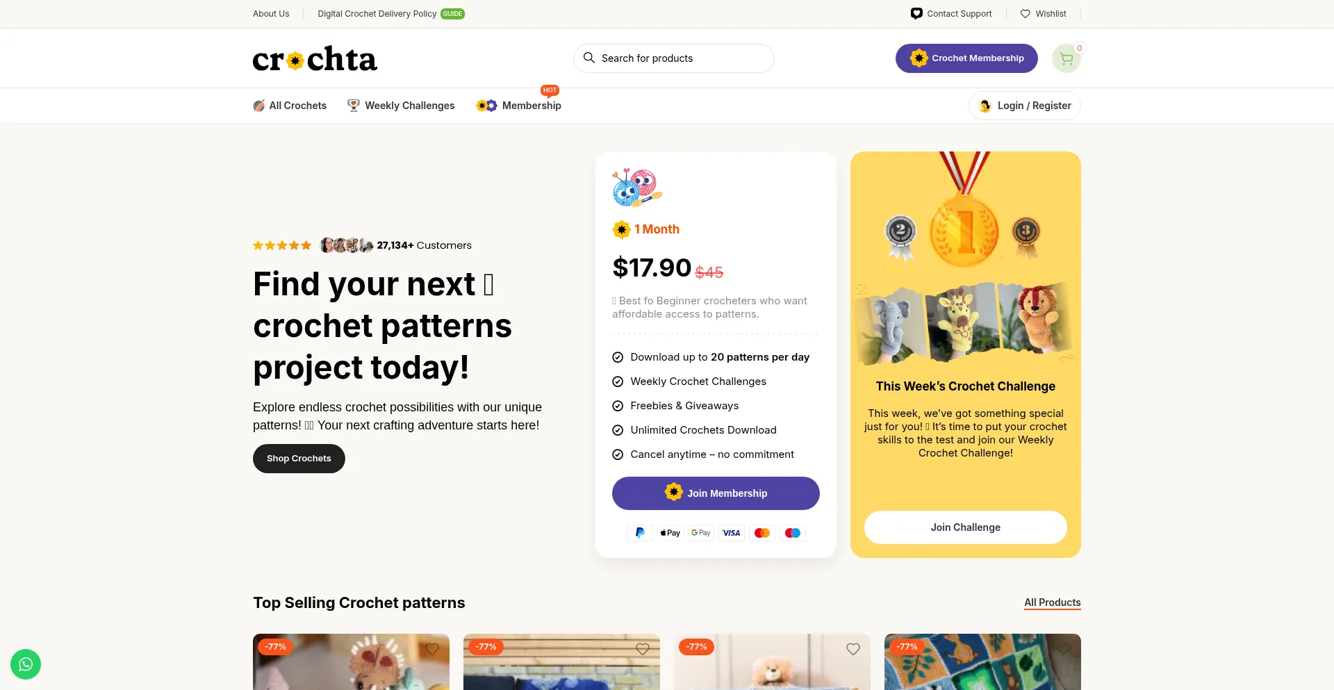 Discover thousands of digital crochet patterns at Crochta! Get unlimited downloads with our membership plan & join weekly crochet challenges
