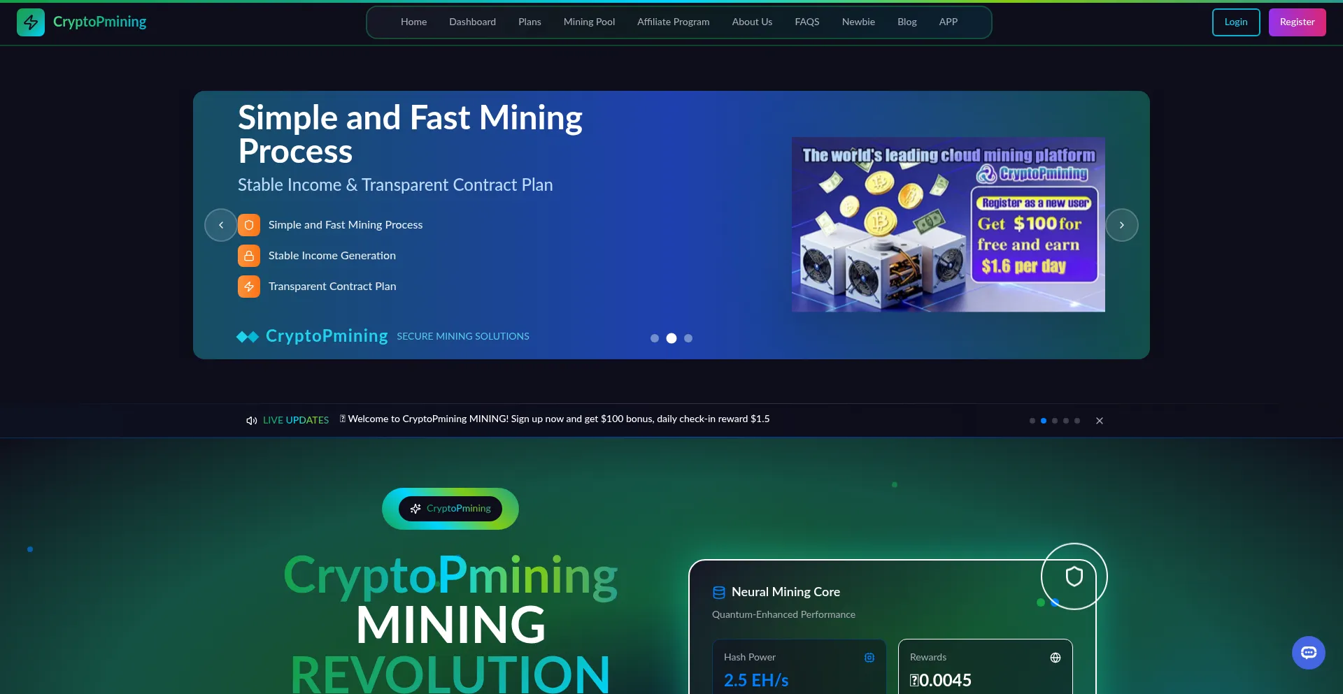 CryptoPmining - Professional Cryptocurrency Mining Platform | $100 Welcome Bonus