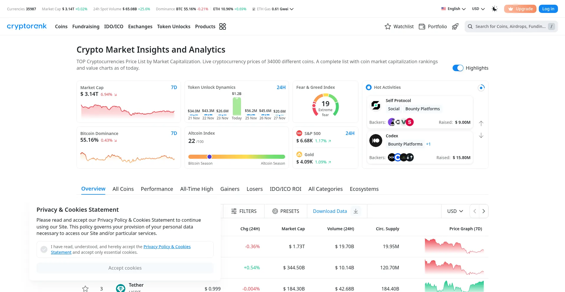 Cryptocurrency prices, Token rates and Altcoin charts ranked by Market Capitalization and Volume | CryptoRank.io