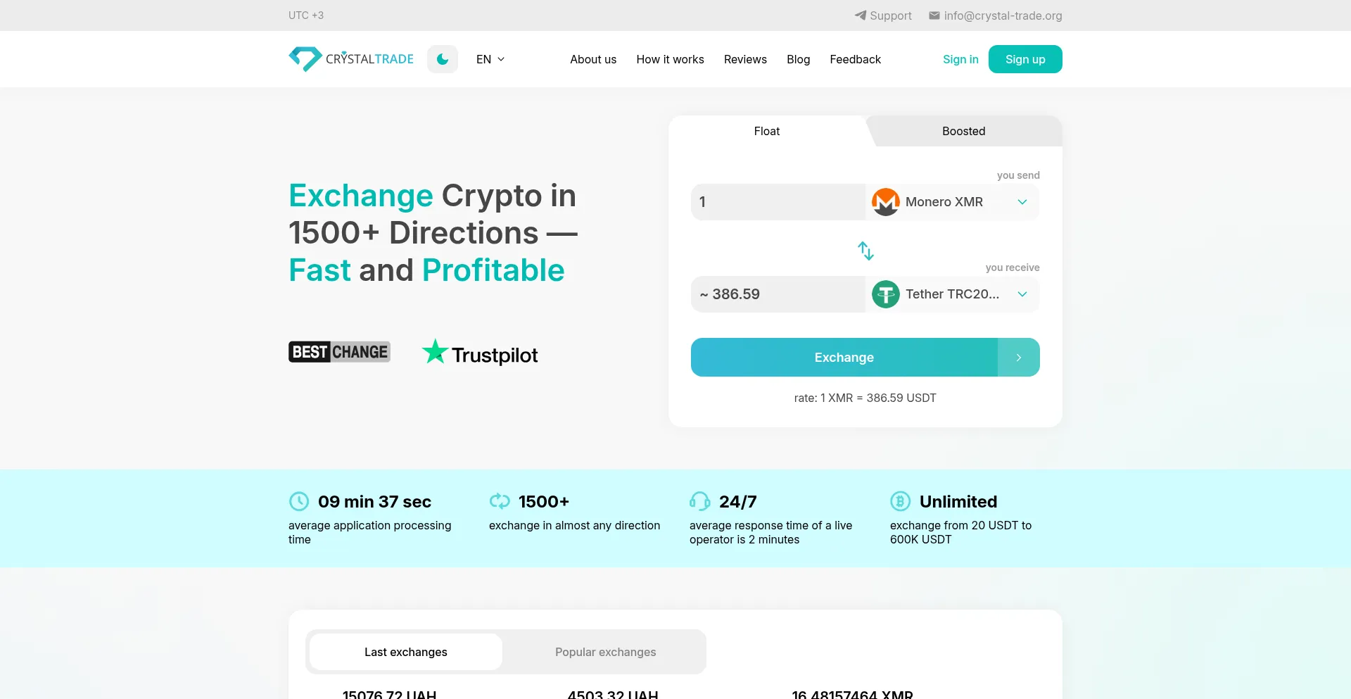 CrystalTrade Exchange: Fast and reliable cryptocurrency exchange | Best rates and low fees