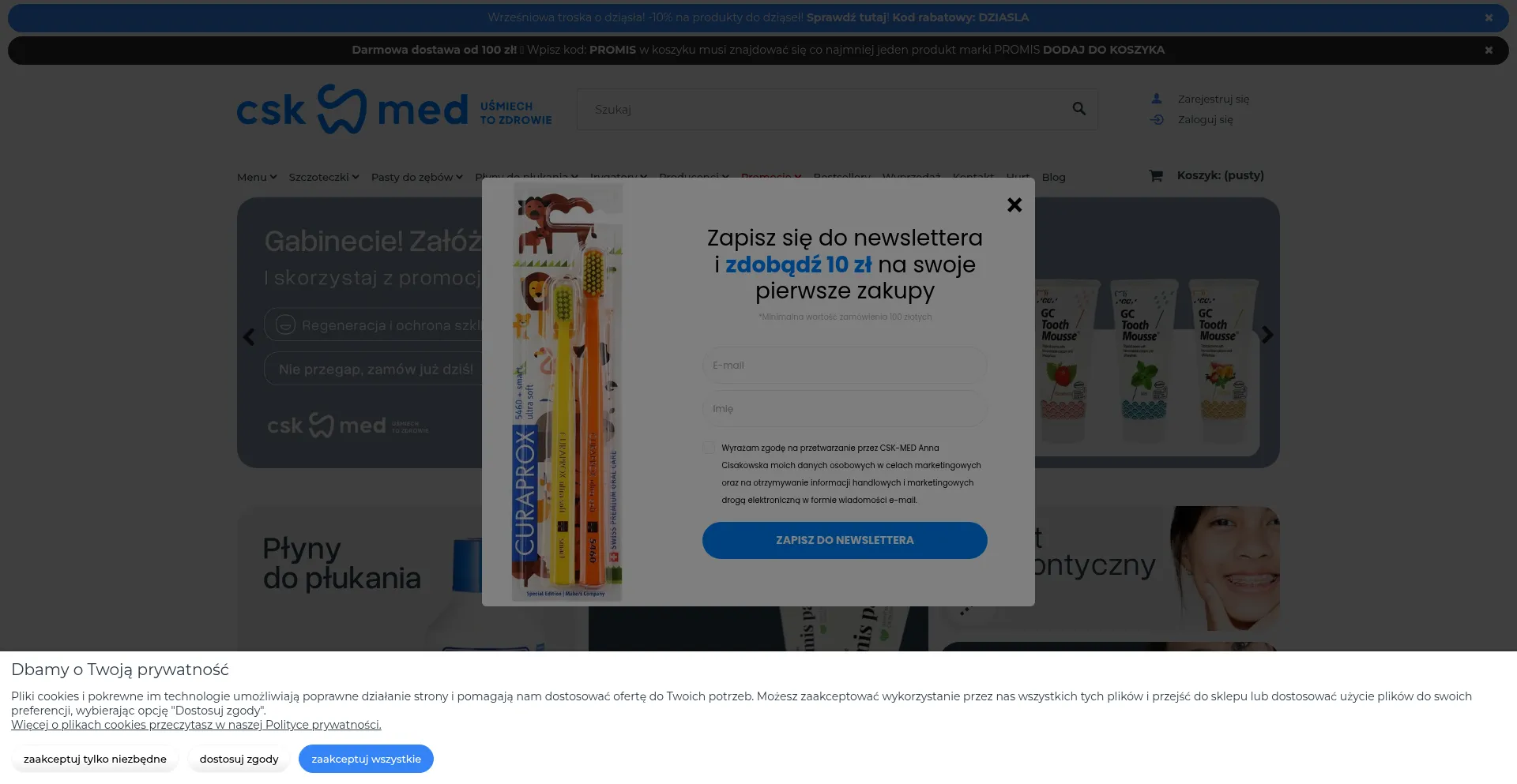 Internetowy sklep z artykułami do higieny jamy ustnej CSK-MED.PL - znajdą Państwo u nas pasty do zębów, płyny do płukania oraz wiele różnych akcesoriów do codziennej h...