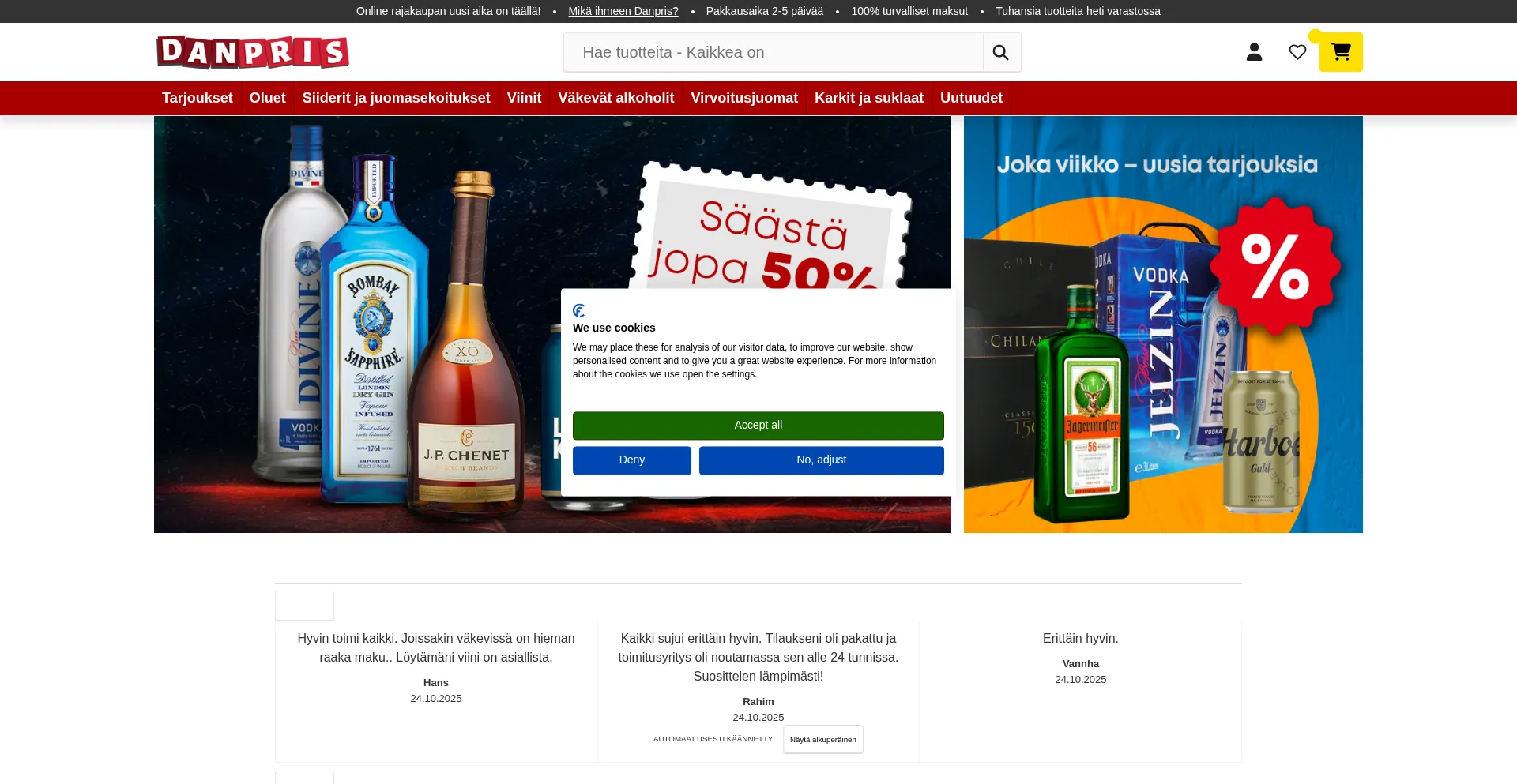 Danpris on rajakauppa netissä, joka oikeasti toimii! Meillä tilausten kanssa ei pelleillä ja pyöritä! Pakkausaika 2-5 arkipäivää. Tilaa karkkia, virvoitusjuomia ja alkoh...
