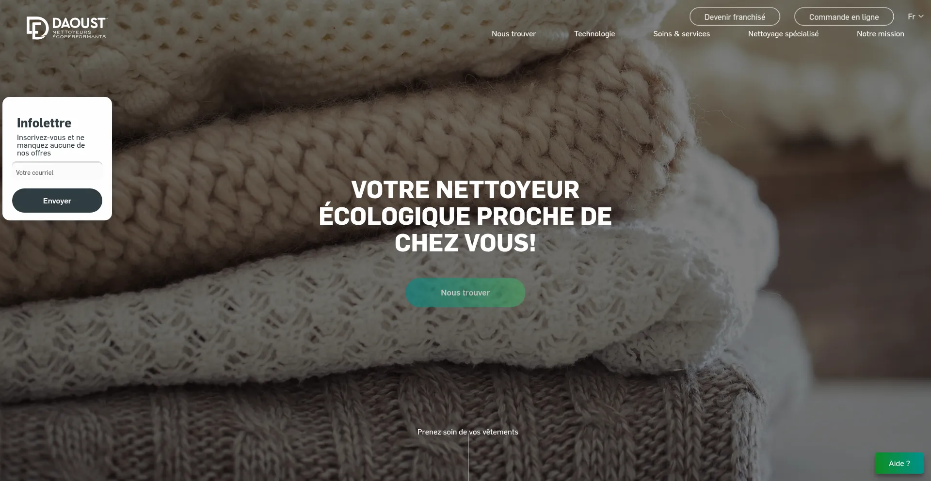 Les nettoyeurs Daoust Éco prennent soin de vos vêtements et textiles, tout en respectant l’environnement : chemises, complets, manteaux, tapis etc.