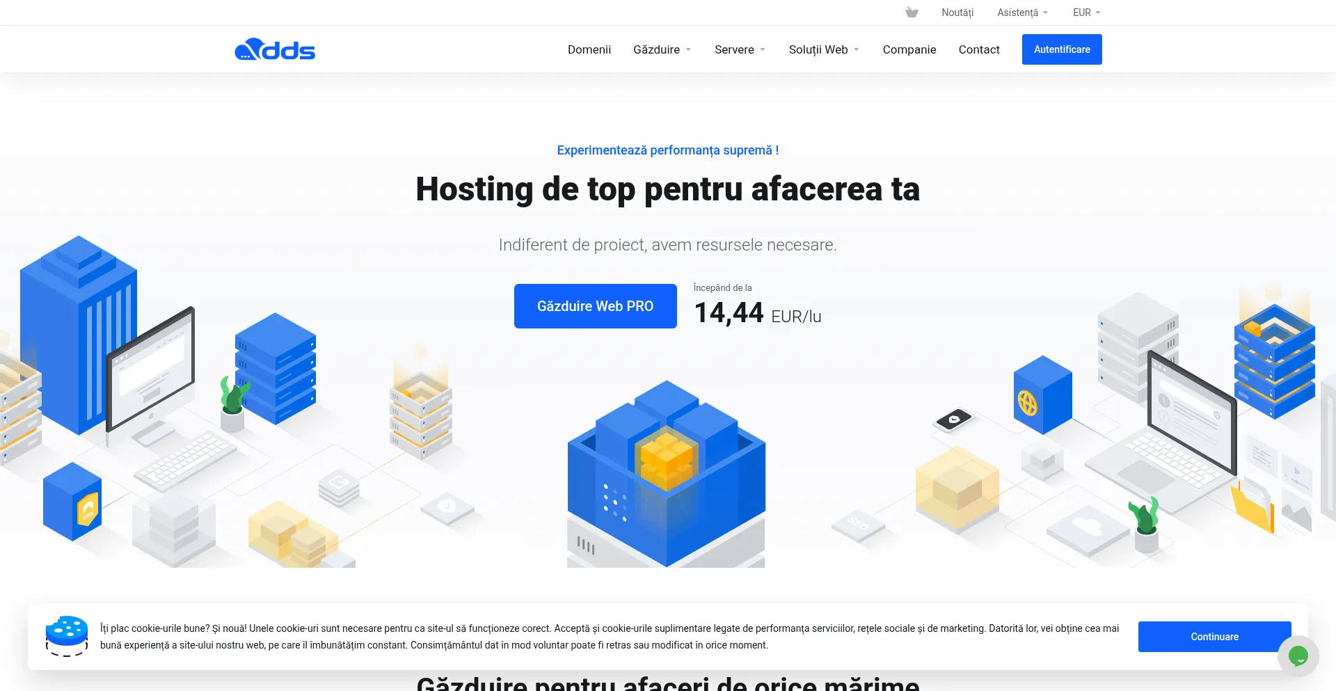 Descoperă DDS Hosting: găzduire rapidă și sigură, cu uptime 99.9%, backup zilnic și suport tehnic 24/7. Optimizează performanța site-ului tău !