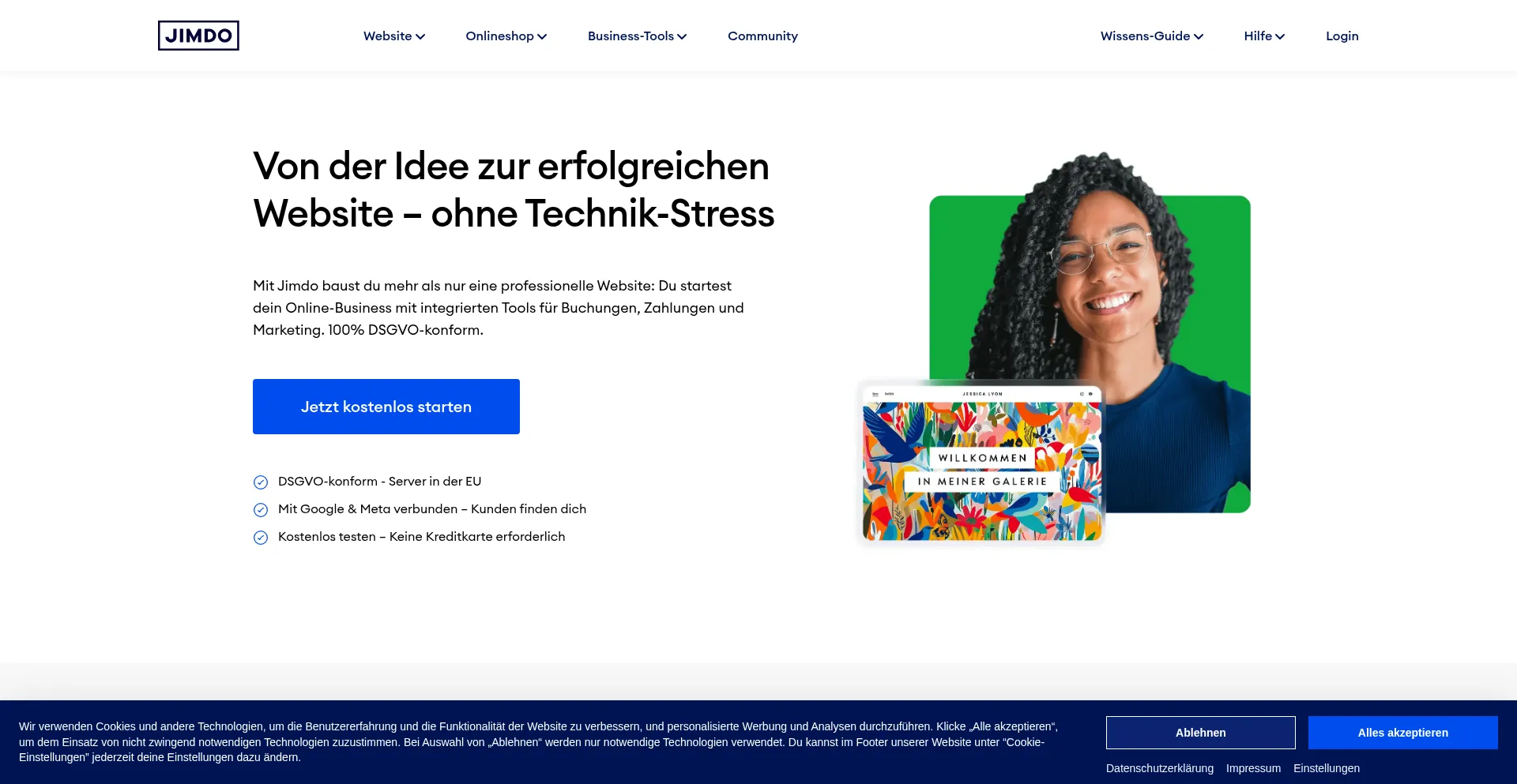Teste jetzt Jimdo, den Komplettanbieter für dein Unternehmen – Website, Onlineshop, Logo, Domain, Hosting und SEO.