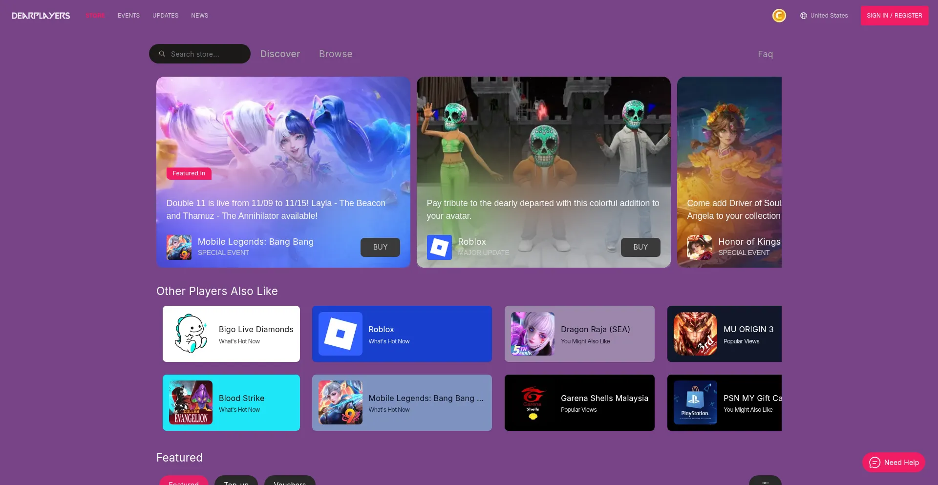 Get instant top-ups for MLBB Diamonds, PUBG UC, Genshin Crystals, and more. Dear Players is your home for the best deals in the United States.