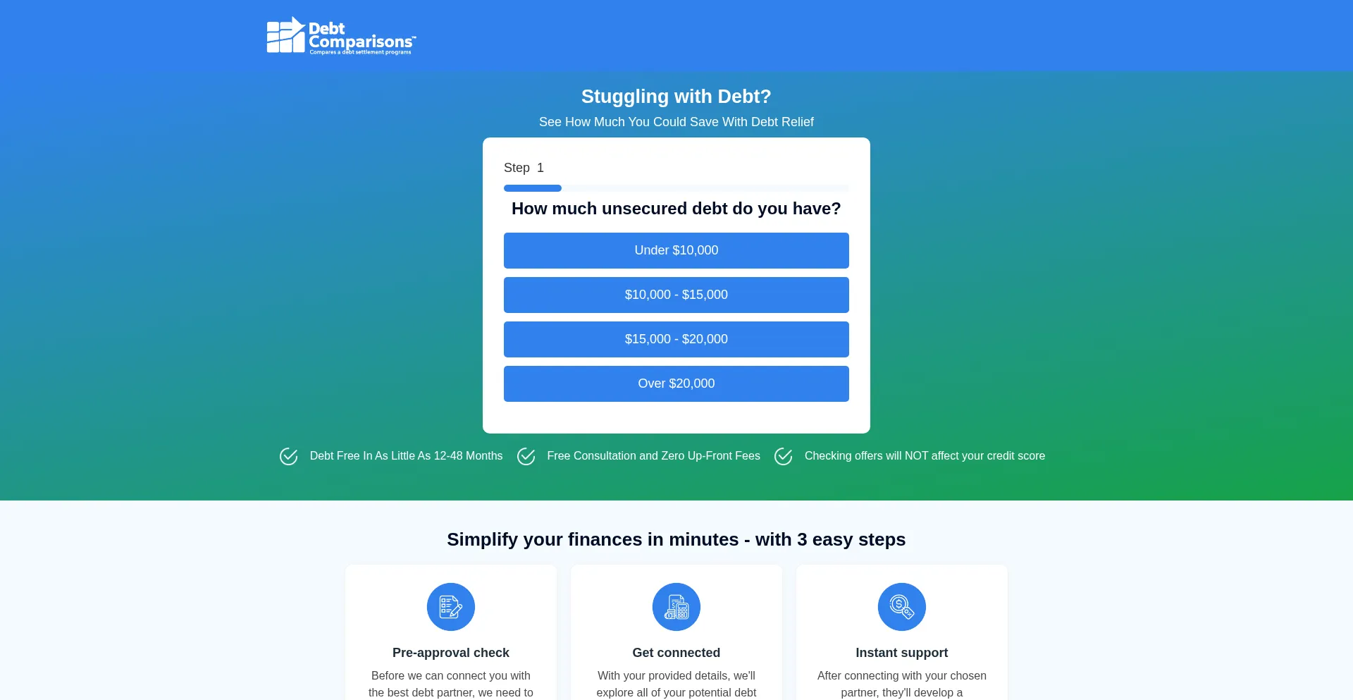 Embora Debt-comparisons.com possa não ser uma fraude completa, tem muitos problemas para ser considerado confiável. A maioria das pessoas estaria melhor evitando-o inteiramente.
