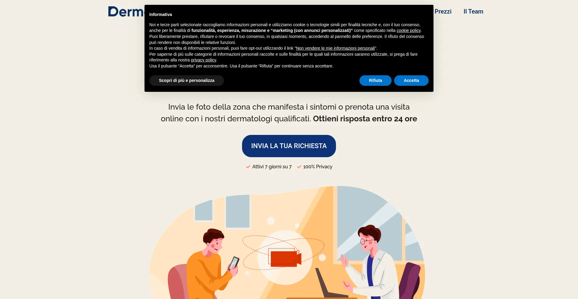 Richiedi un consulto ai nostri dermatologi. Seleziona Foto consulto o visita online e ricevi risposta entro 24 ore dalla richiesta