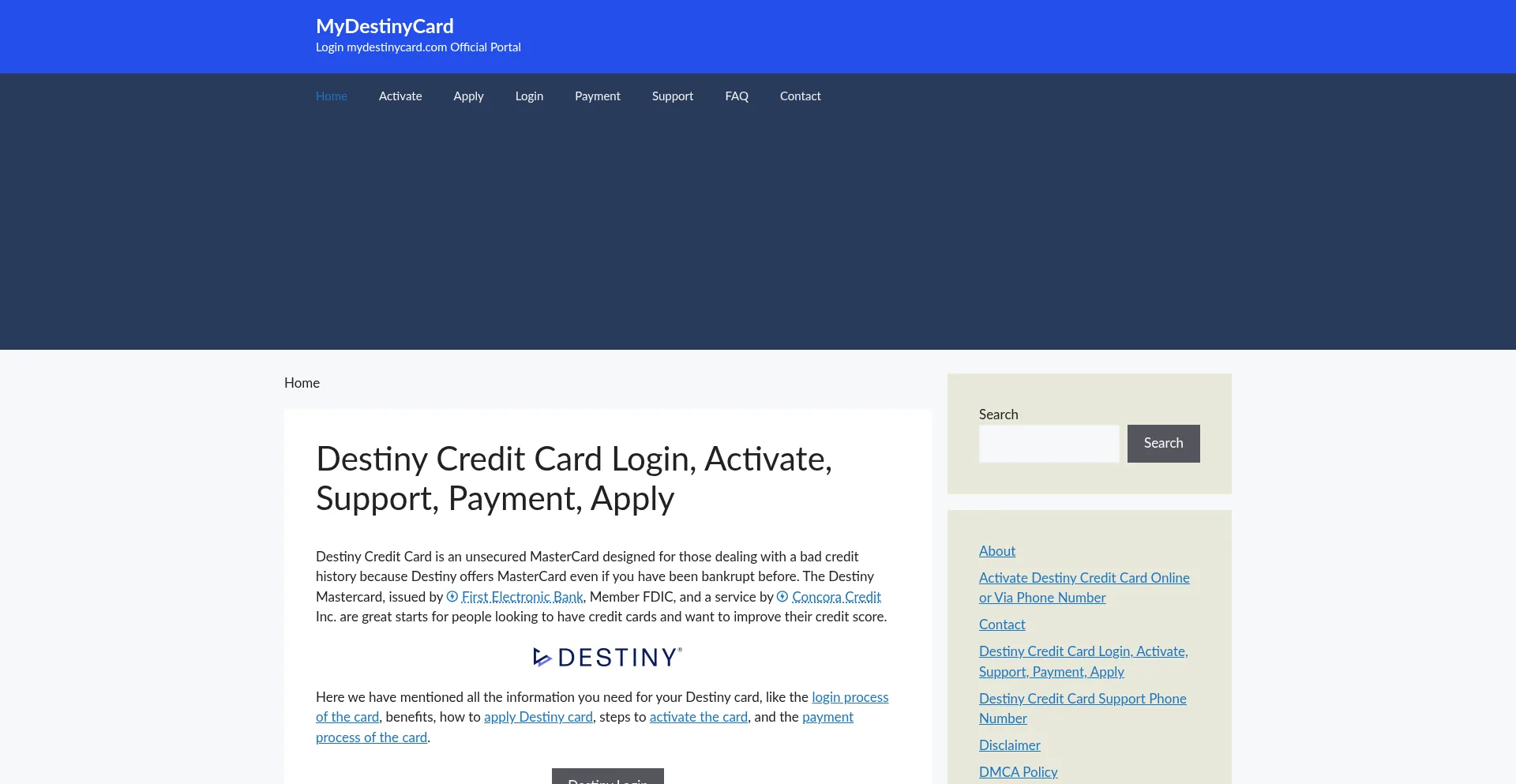 Destiny Credit Card Login, Activate, Support, Payment, Apply