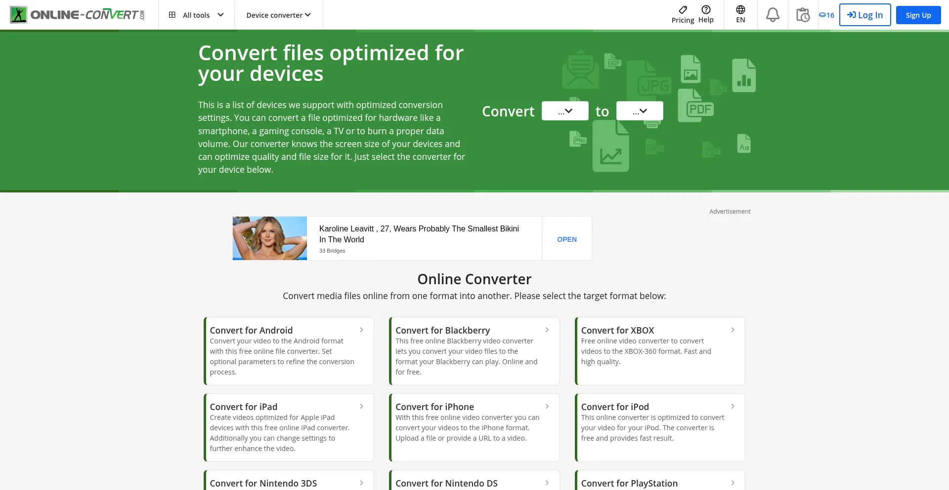 A set of our online file converter that convert files optimized for hardware like smartphones, gaming consoles, TVs and more.