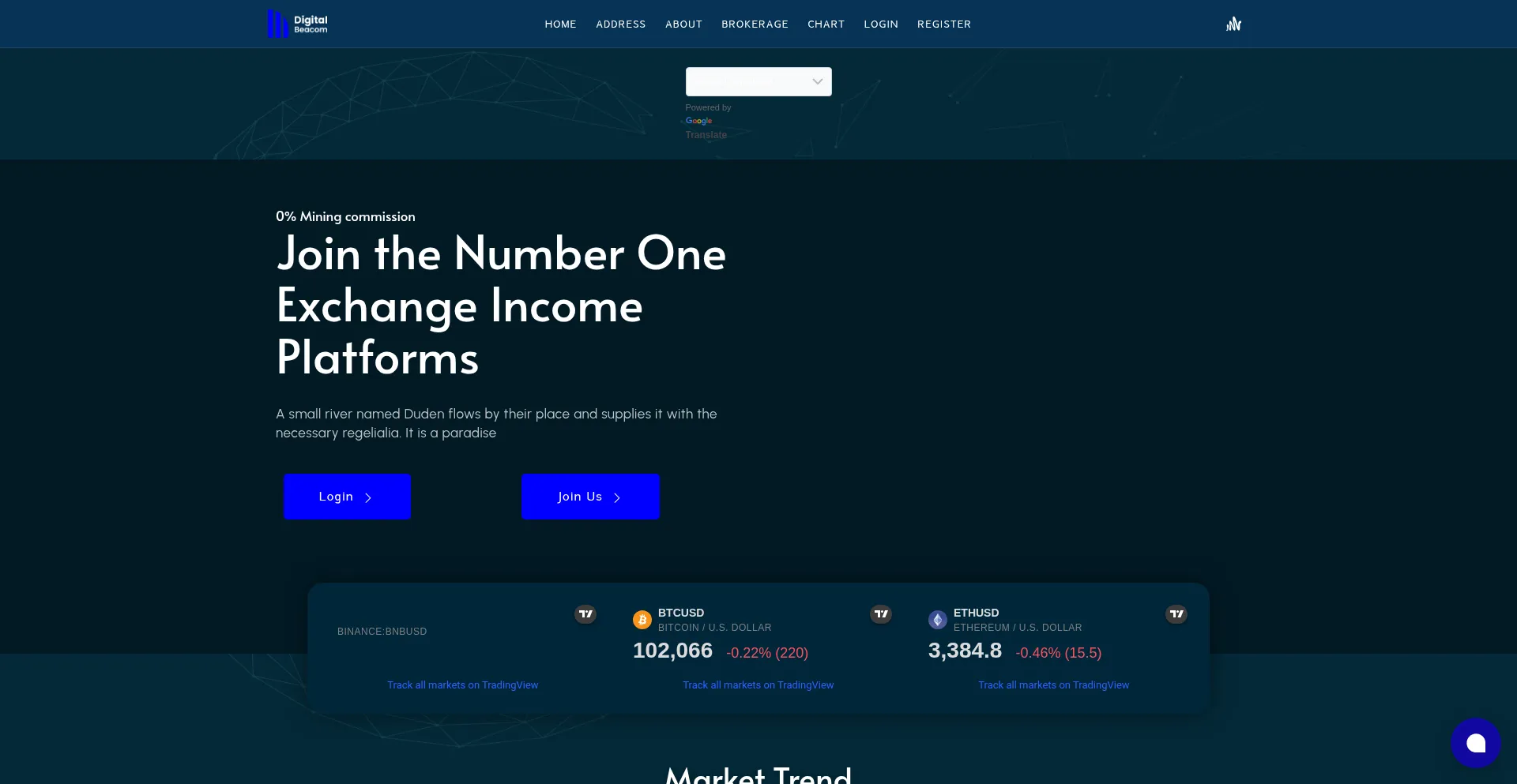 Cryptocurrency, Registration Form, Wordpress Platform, Bootstrap Framework, Google Translate, Young Domain