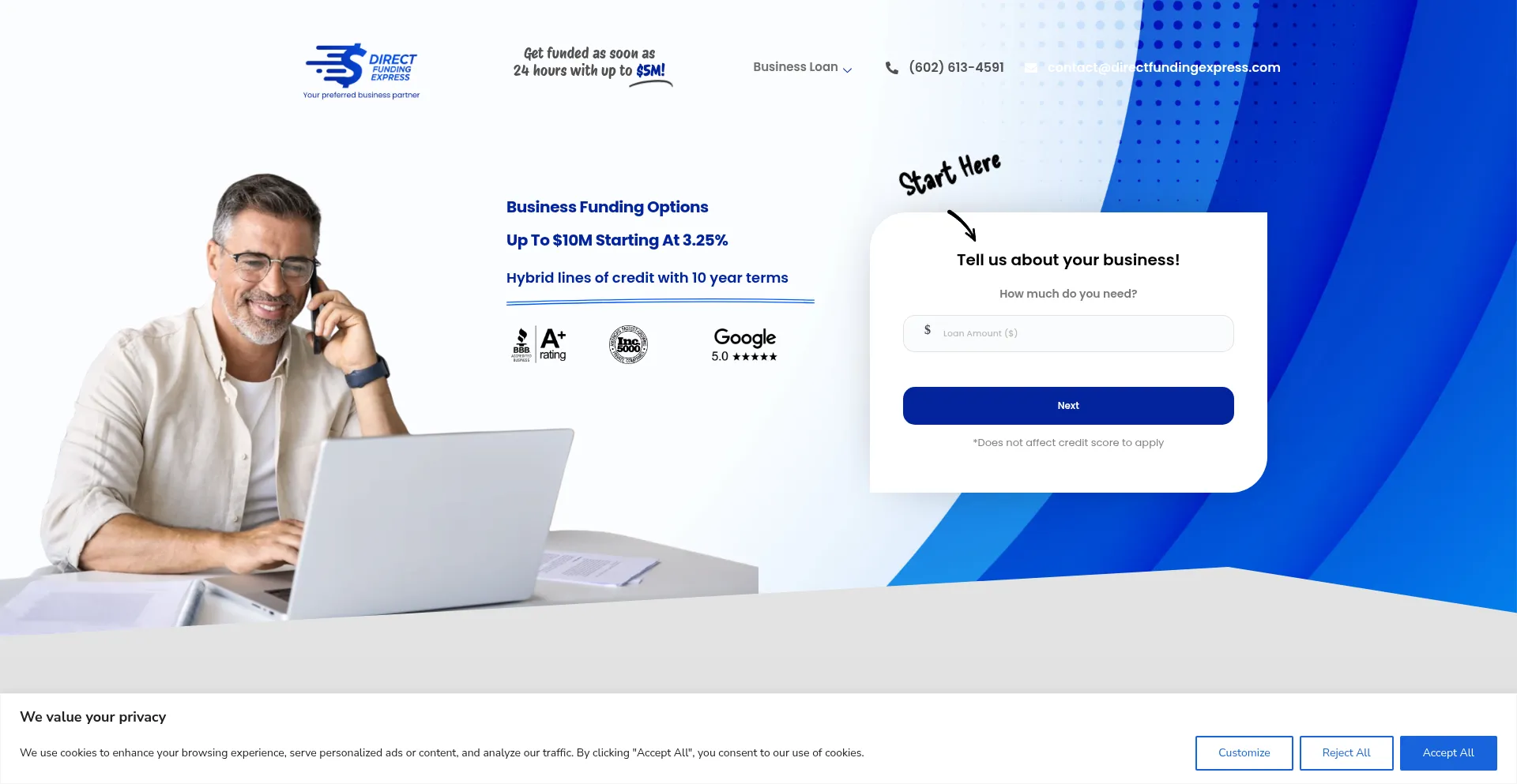 O site implementa mecanismos de consentimento de cookies em conformidade com regulamentações de privacidade como GDPR ou CCPA. Isso demonstra que directfundingexpress.com adere a padrões de proteção de dados e fornece aos usuários controle sobre práticas de coleta de dados pessoais.