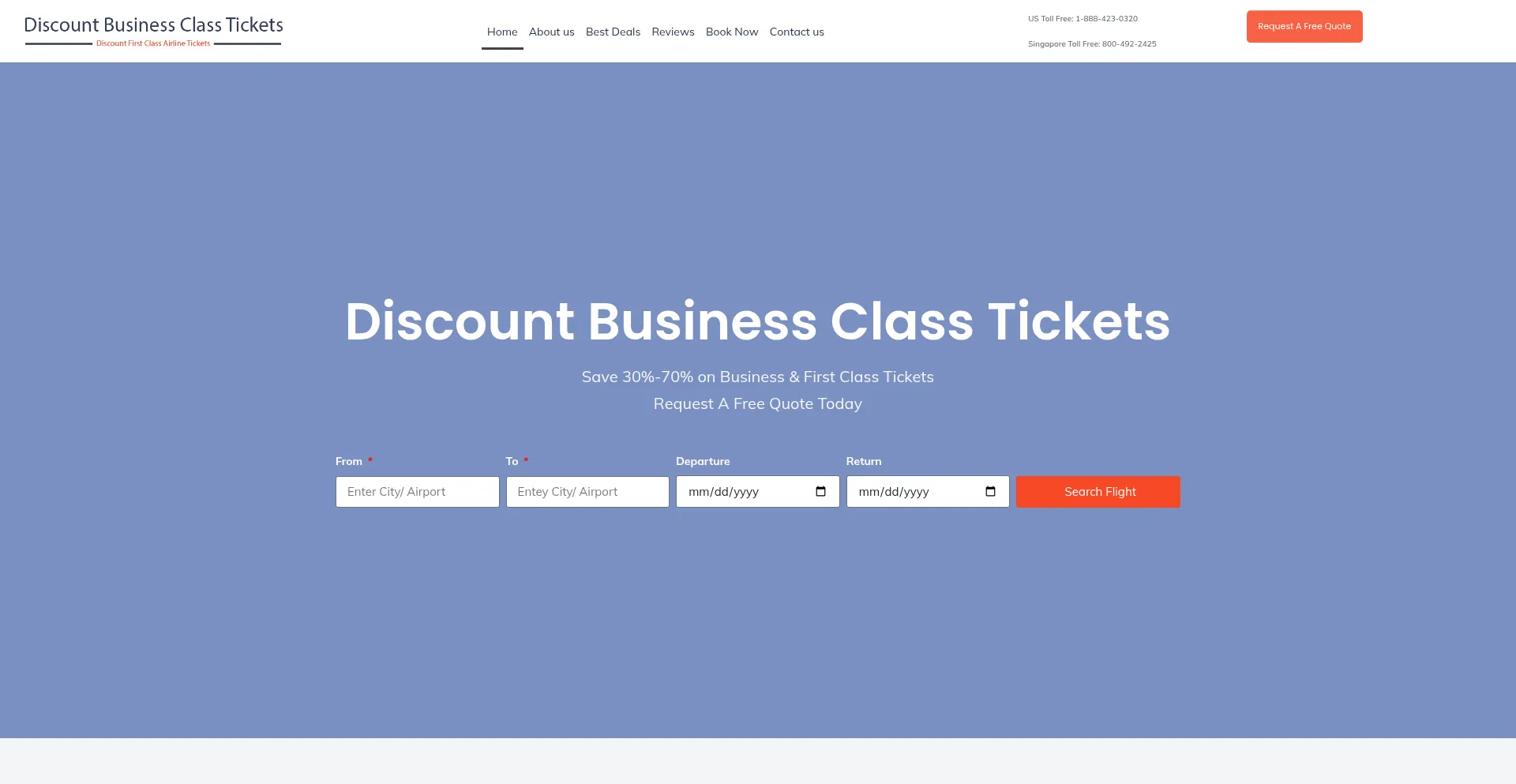 Save 30%-70% on Business & First Class TicketsRequest A Free Quote Today