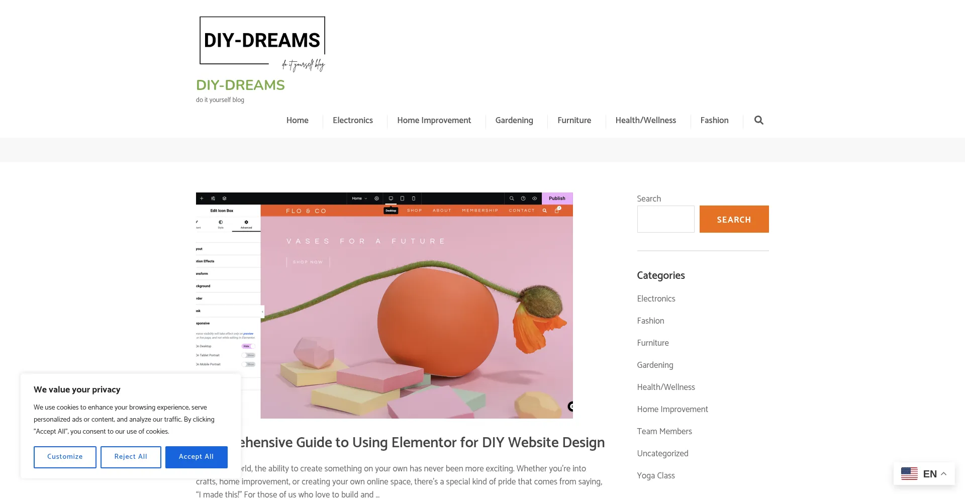 O site implementa mecanismos de consentimento de cookies em conformidade com regulamentações de privacidade como GDPR ou CCPA. Isso demonstra que diy-dreams.com adere a padrões de proteção de dados e fornece aos usuários controle sobre práticas de coleta de dados pessoais.