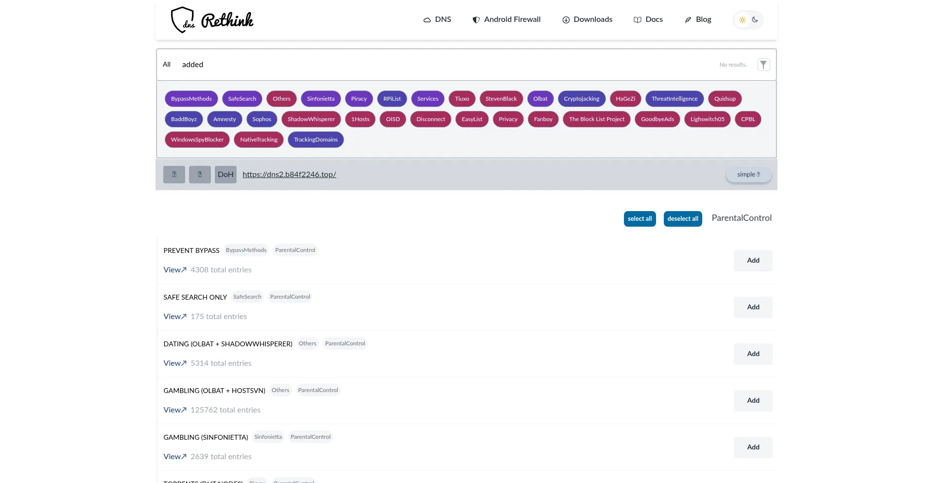 Configure Blocklists | RethinkDNS