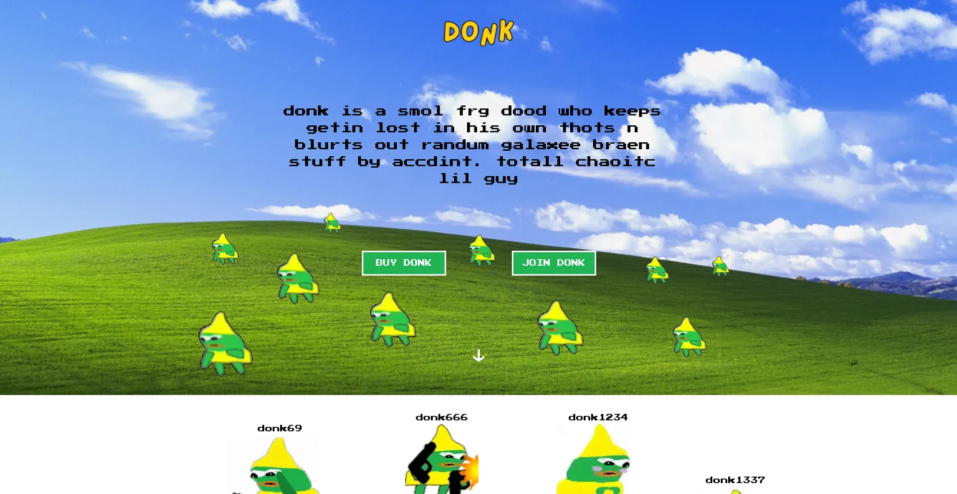 donk is a smol frg dood who keeps getin lost in his own thots n blurts out randum galaxee braen stuff by accdint. totall chaoitc lil guy
