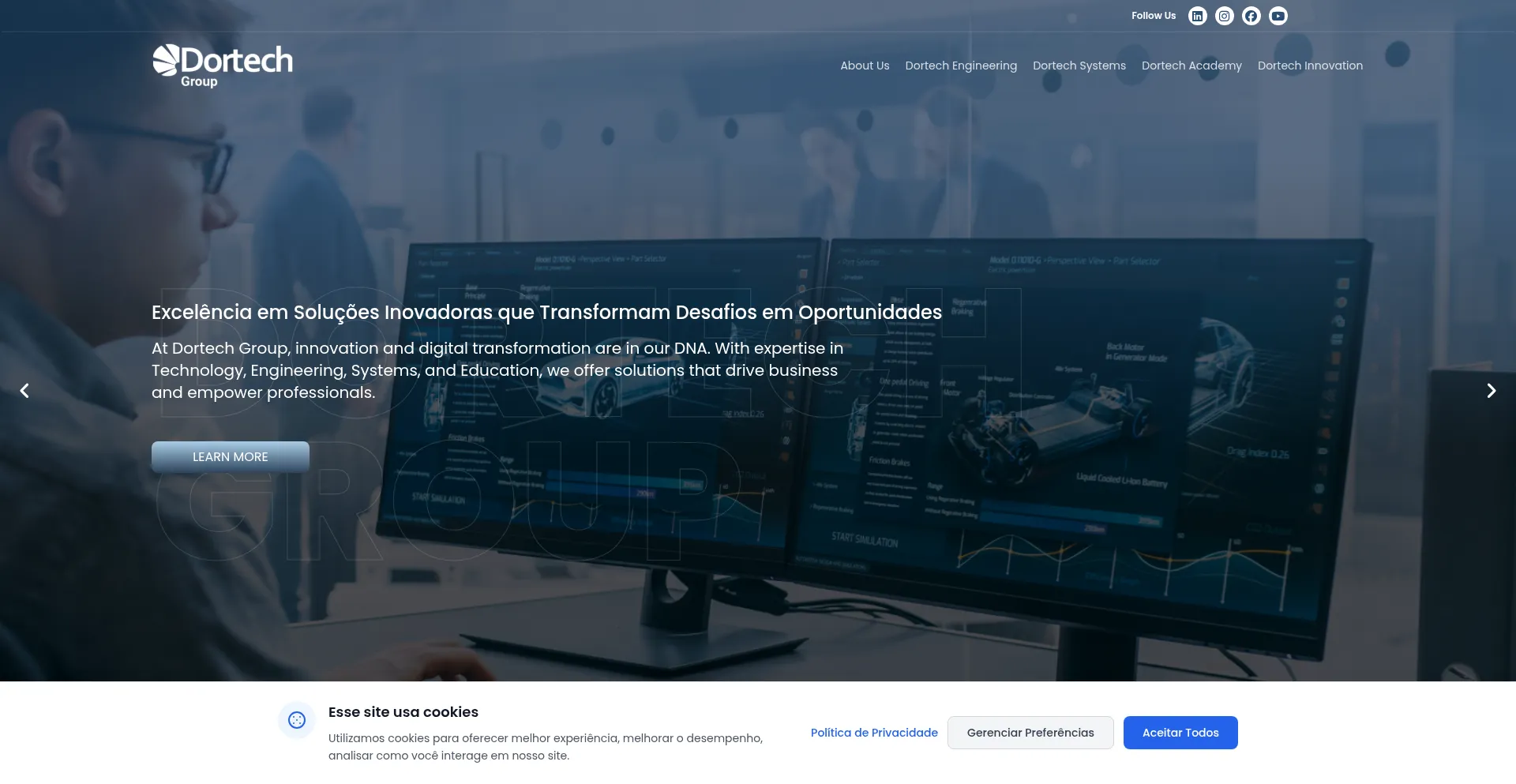A presença de links de redes sociais no site indica que dortech-group.com mantém contas oficiais em redes sociais, o que é um sinal positivo de credibilidade e engajamento.