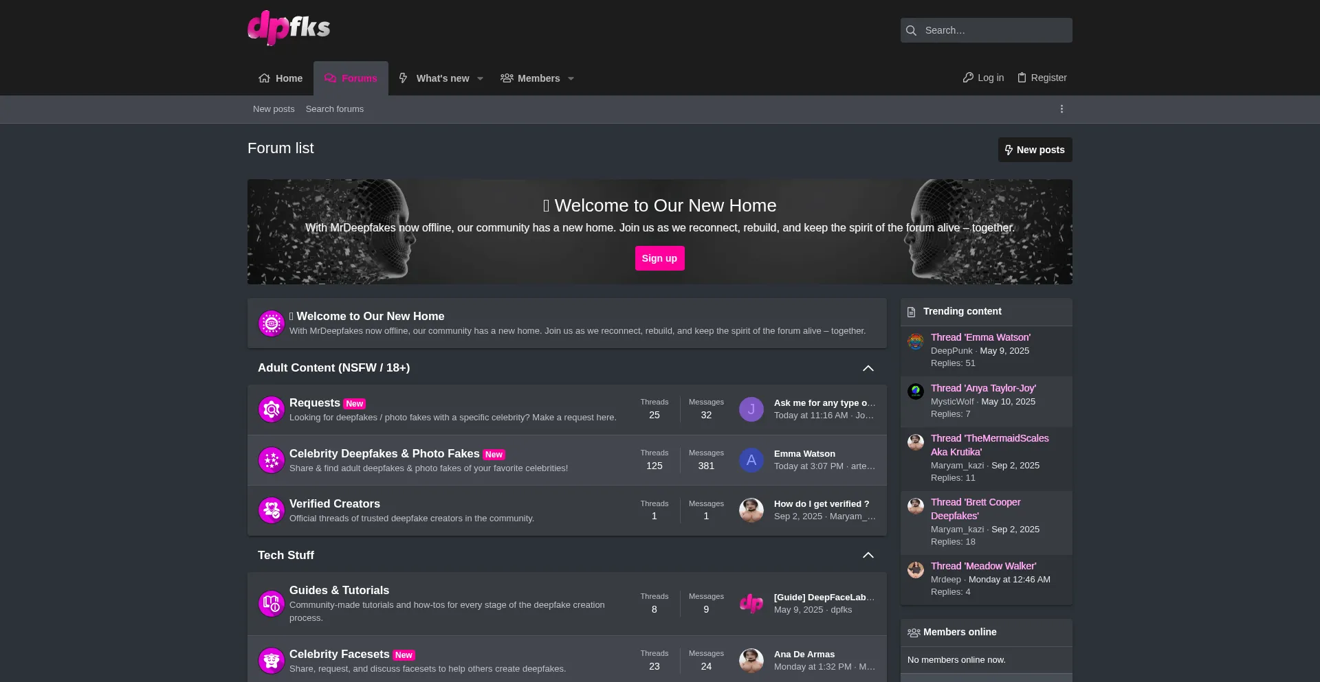 MrDeepfakes RIP 😔 Welcome to dpfks.com, the new home for deepfake enthusiasts. Join our growing community to share knowledge, ask questions, and stay connected.