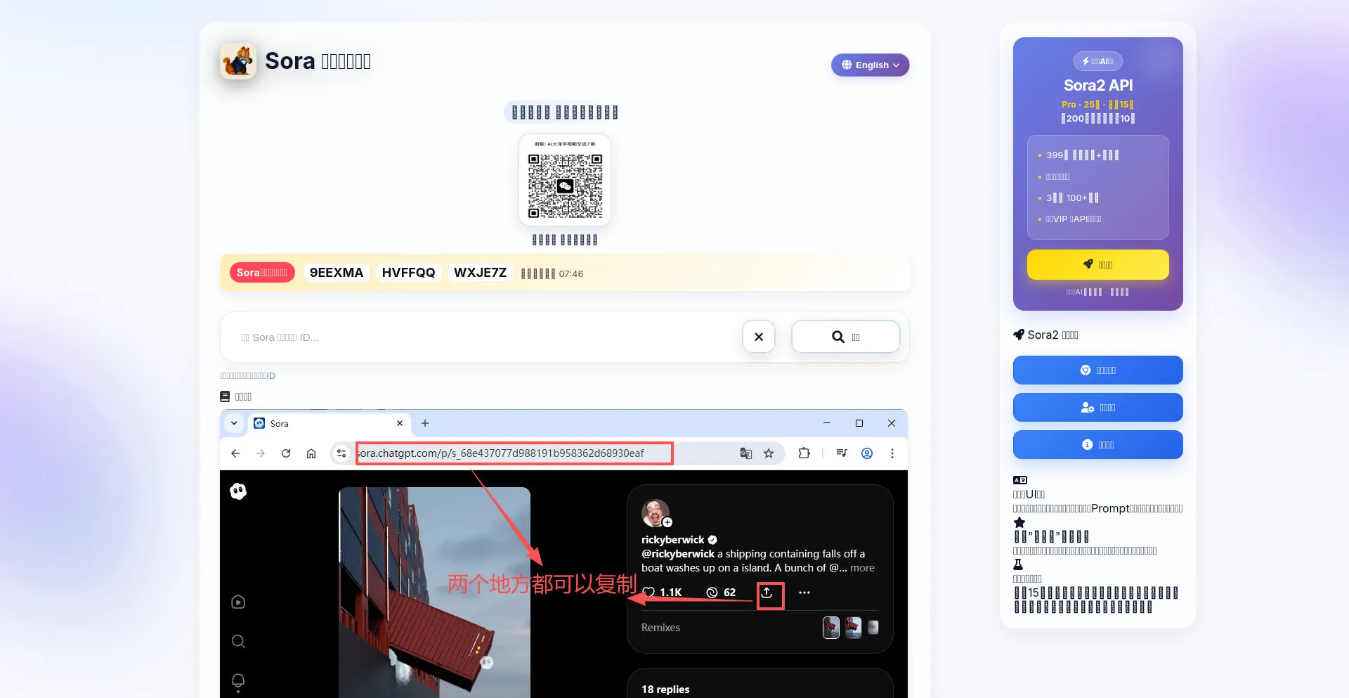 首页:一站式 Sora 视频解析与下载。支持完整链接、路径或纯ID;自动适配手机/电脑;一键复制提示词与标题;生成独立分享链接与完...