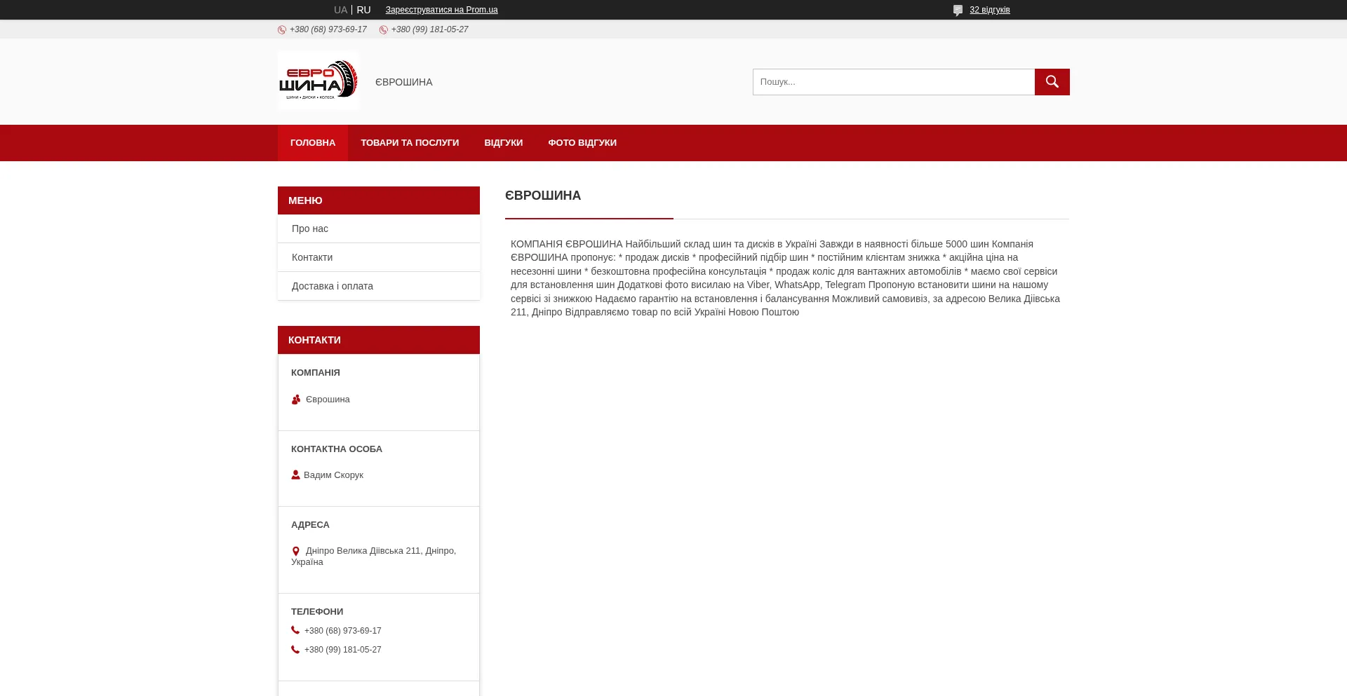 "Єврошина" - контакти, товари, послуги, ціни