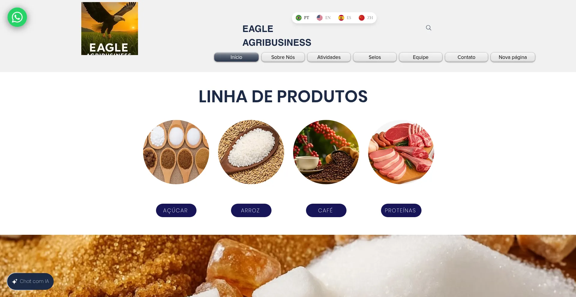 "Eagle of Agribusiness Holding Ltda especialistas em exportações, Vendas no atacado de produtos alimentícios, intermediação internacional de commodities agrícolas, aç�...