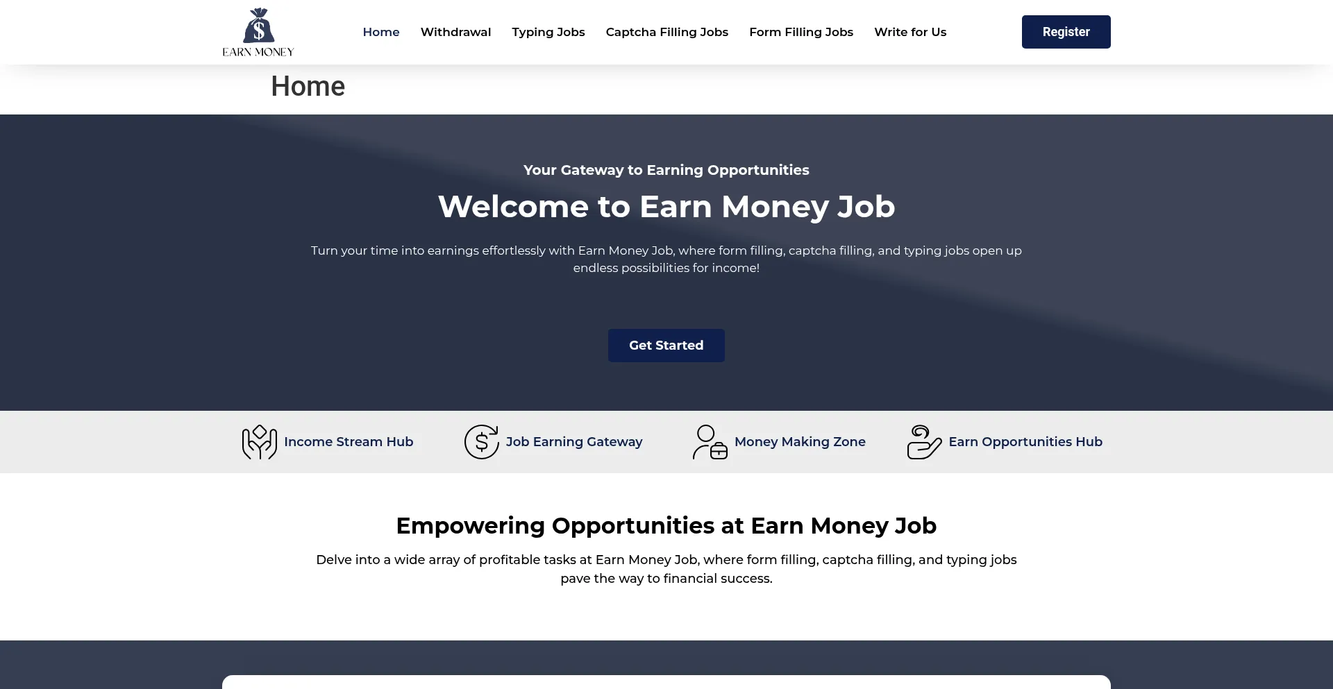 EarnMoneyJob.com offers 100% legit part-time jobs work from home with free registration, including typing jobs, captcha filling, and form filling.