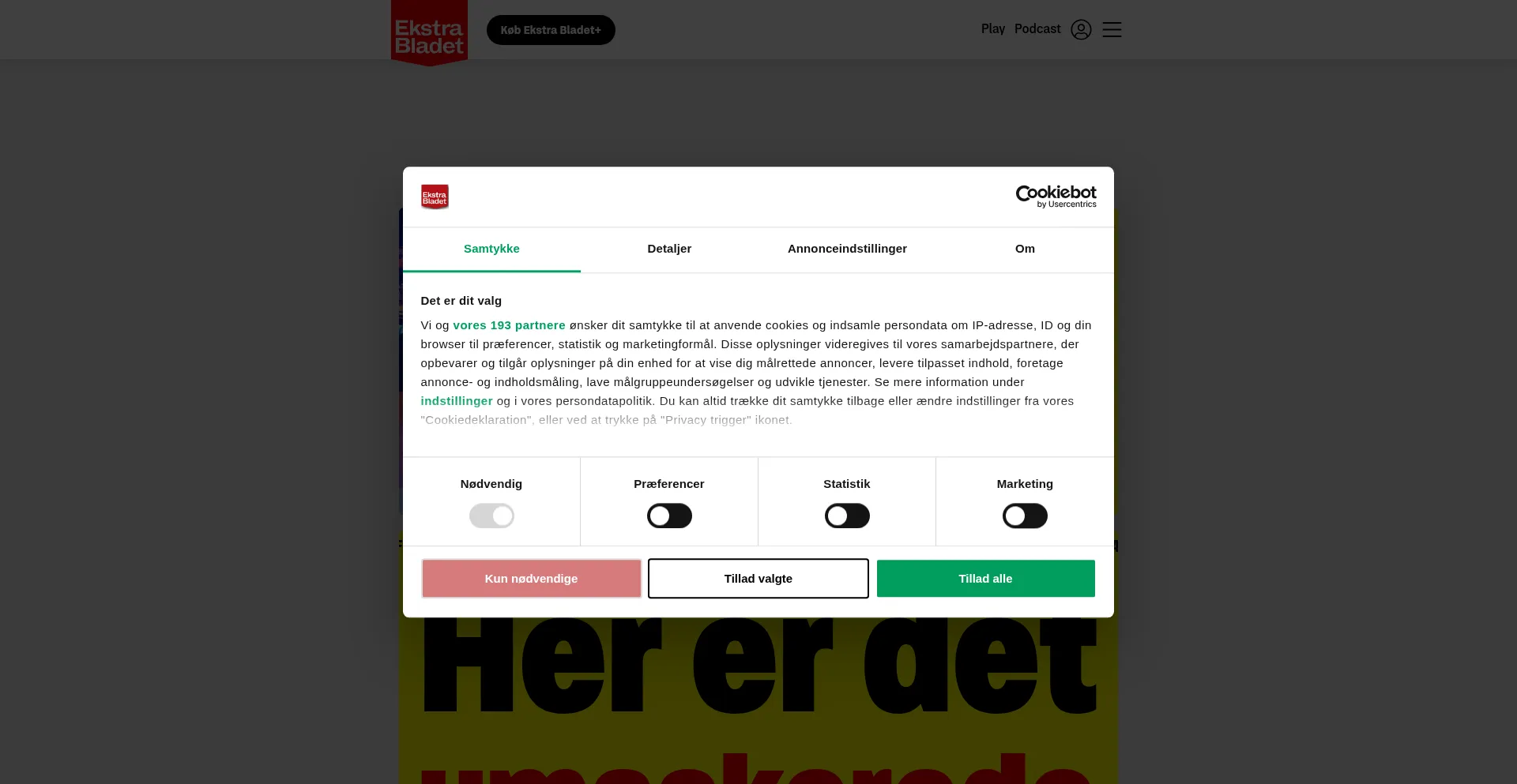 O site implementa mecanismos de consentimento de cookies em conformidade com regulamentações de privacidade como GDPR ou CCPA. Isso demonstra que eb.dk adere a padrões de proteção de dados e fornece aos usuários controle sobre práticas de coleta de dados pessoais.